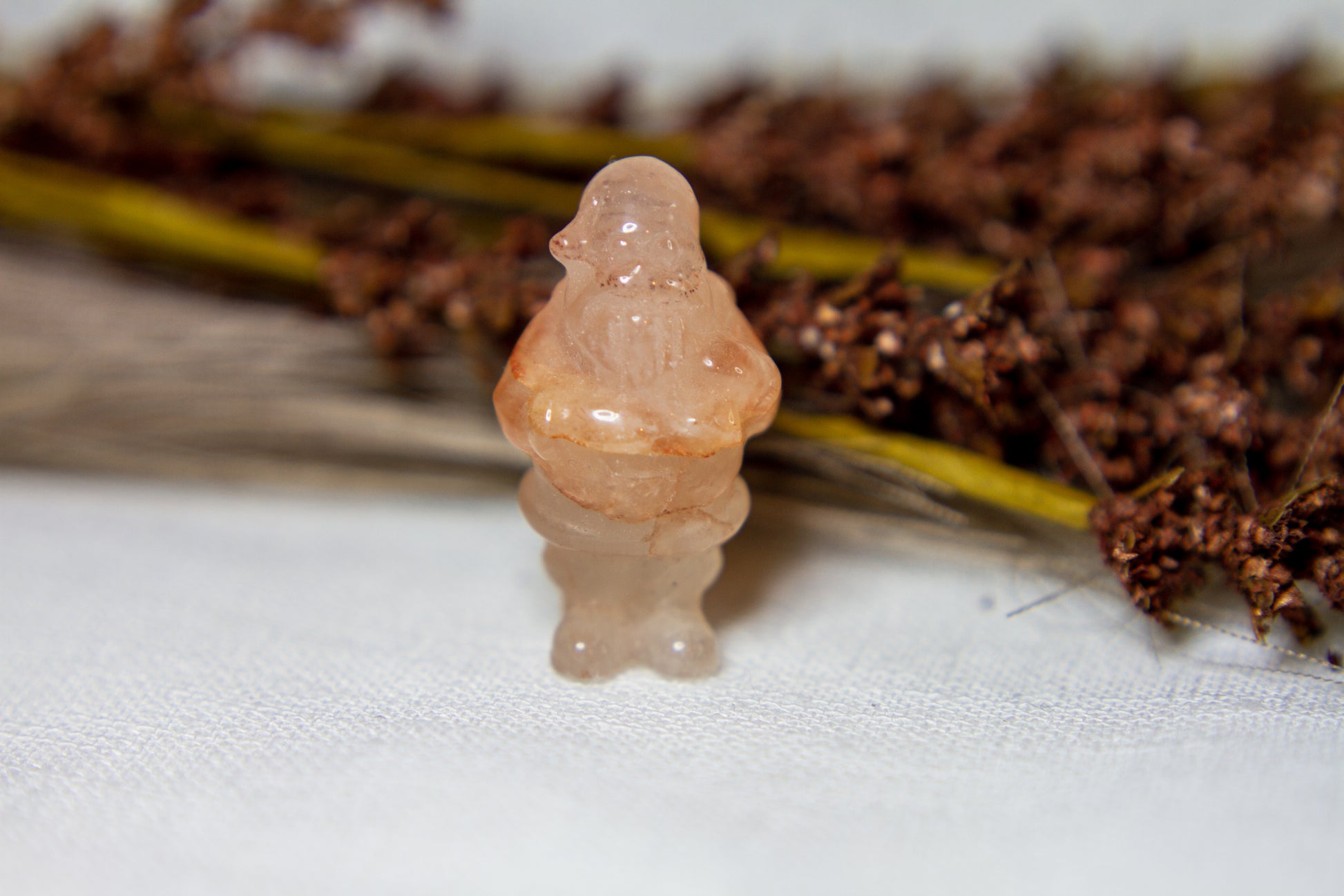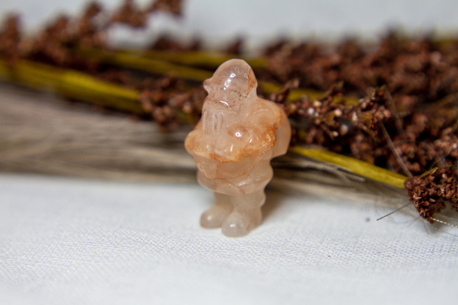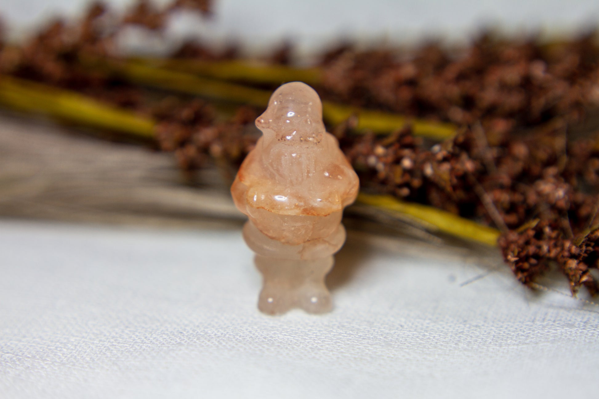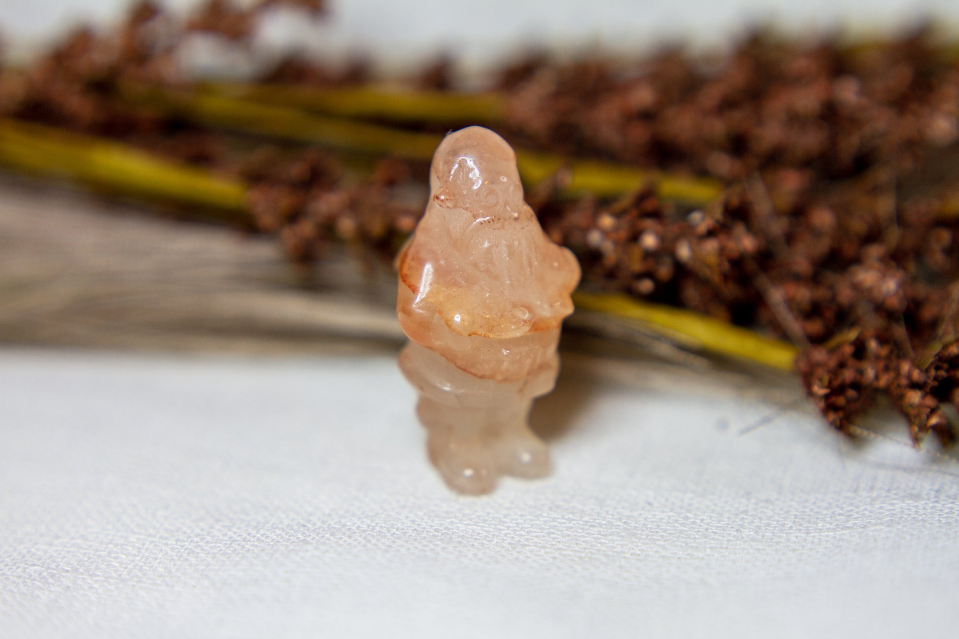 Otroligt vÀlgjord, varm och glÀnsande jultomte i kristallen golden healer. Tomten Àr klar och  tydlig med varma linjerade inklusioner av djup golden healer, och Àr ca 4,1cm hög!