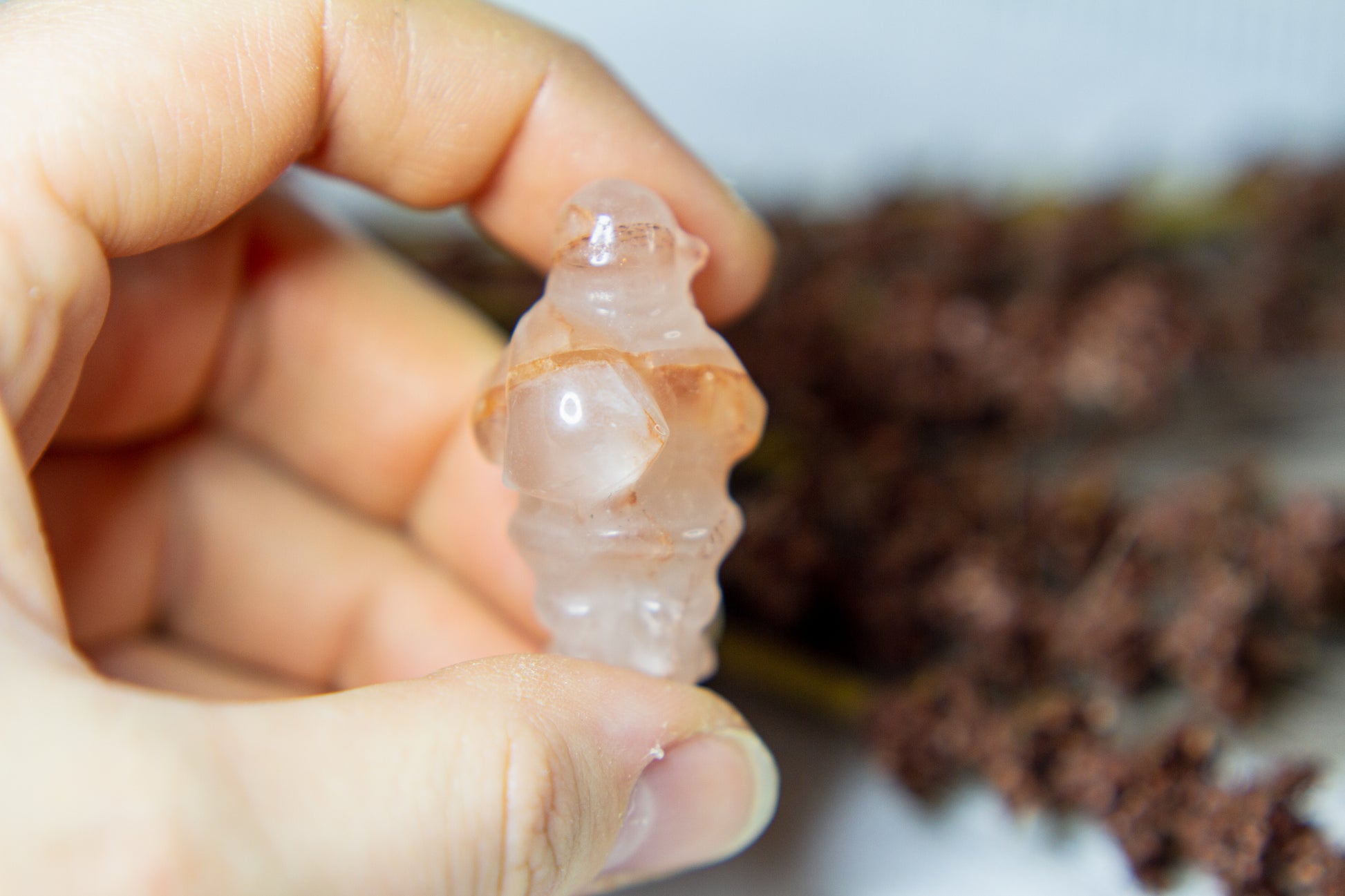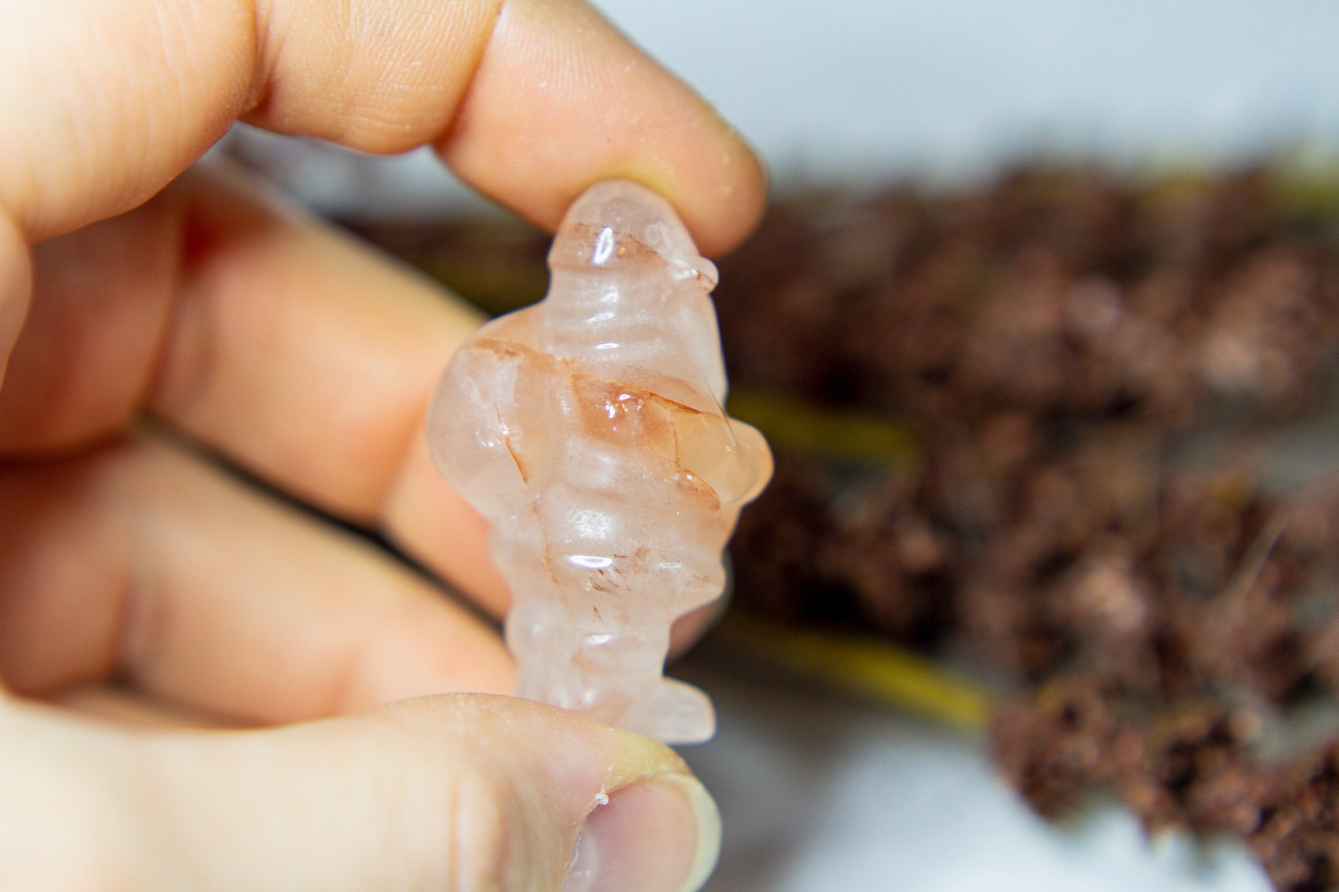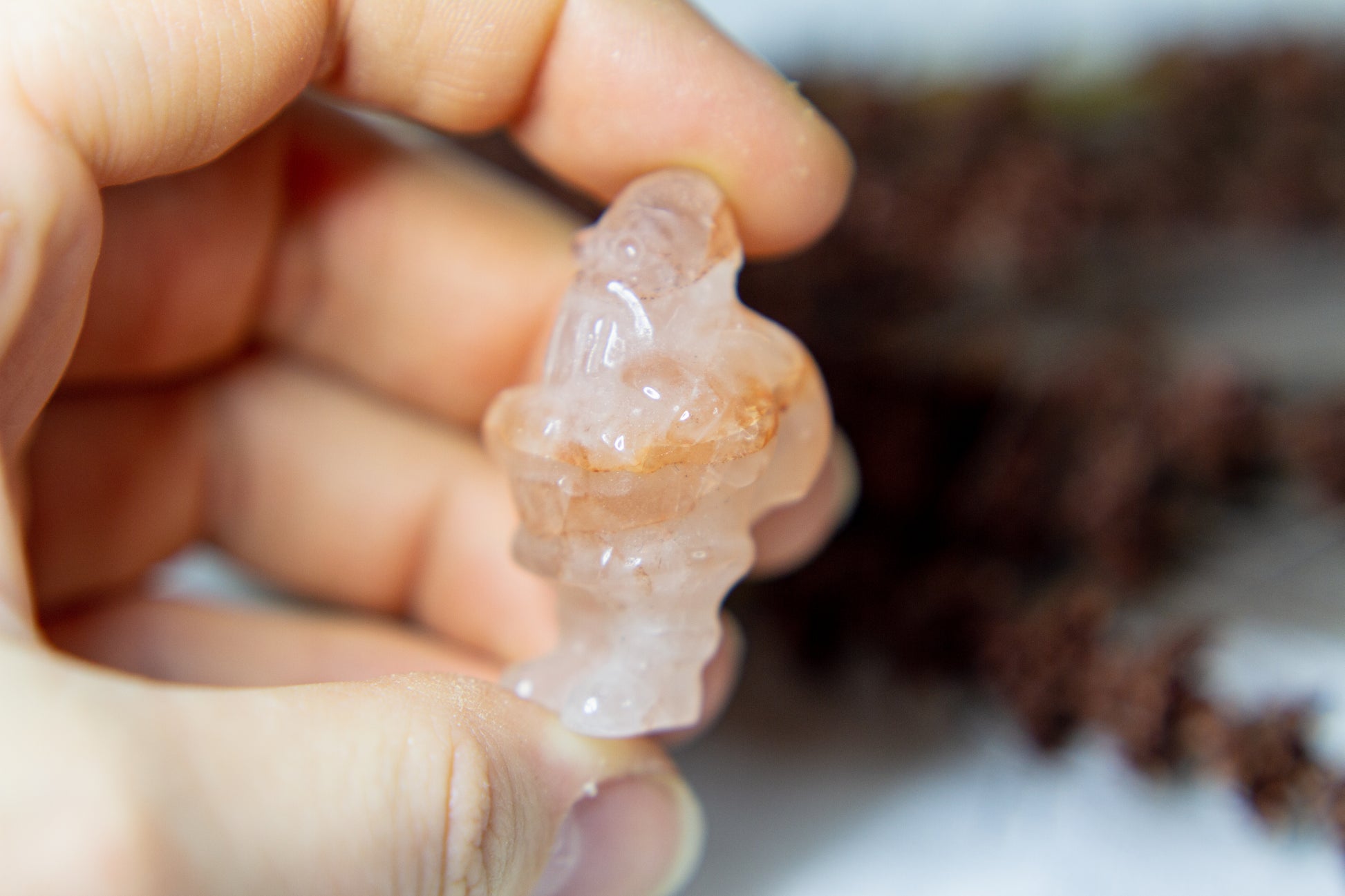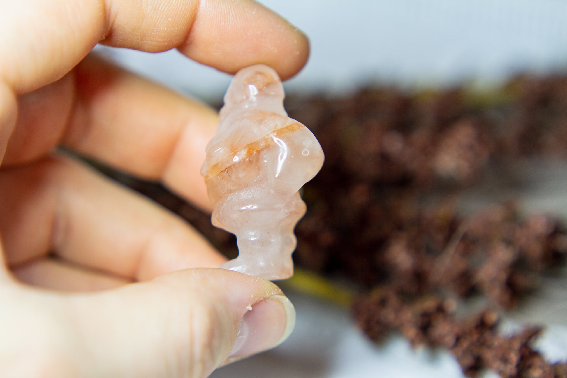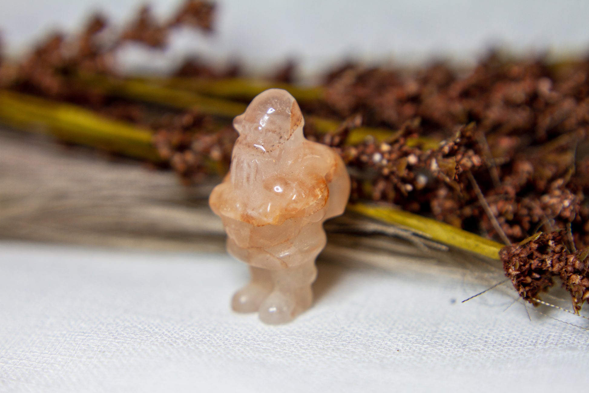 Otroligt vÀlgjord, varm och glÀnsande jultomte i kristallen golden healer. Tomten Àr klar och  tydlig med varma linjerade inklusioner av djup golden healer, och Àr ca 4,1cm hög!