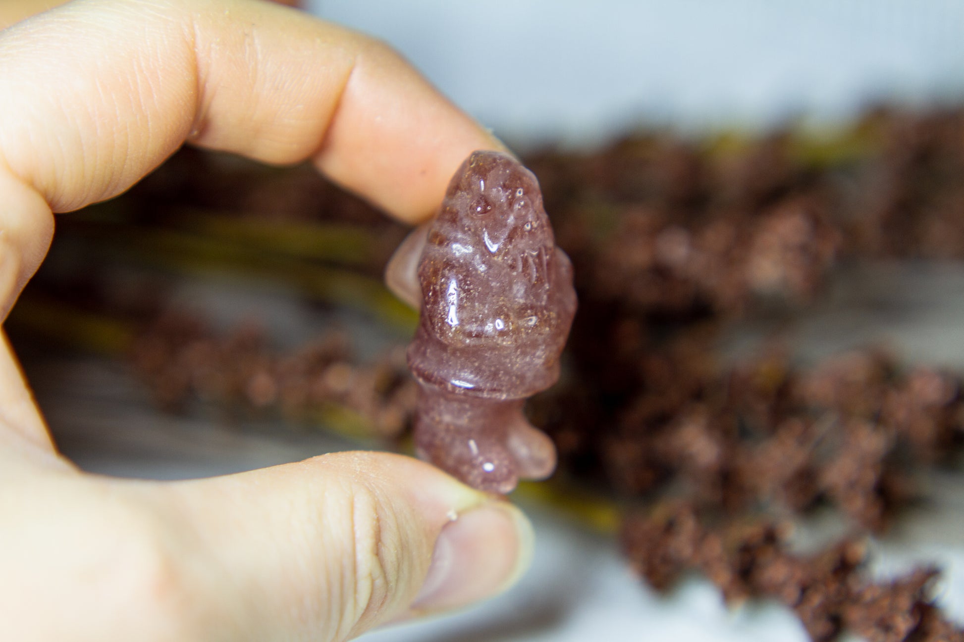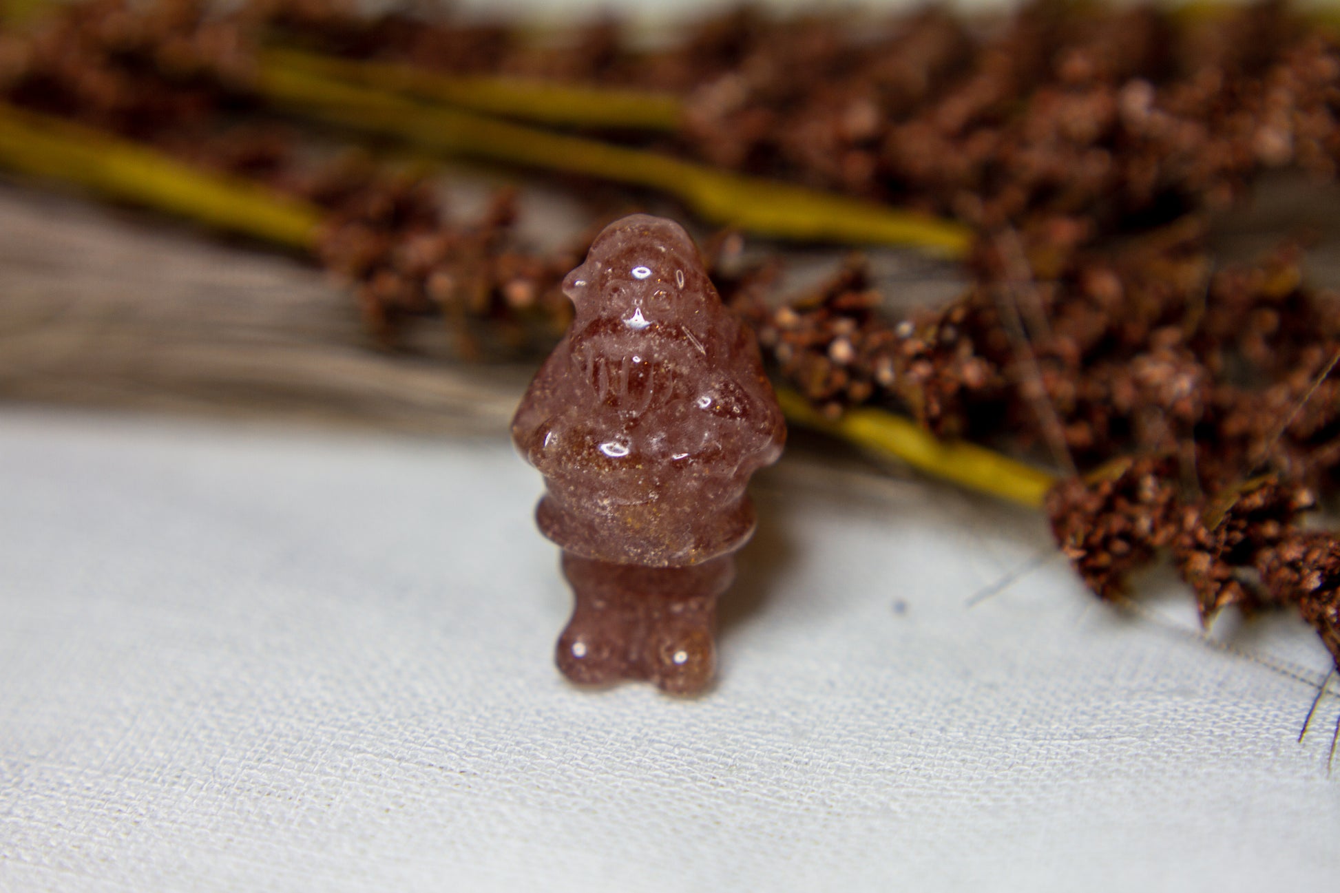 Very nice, juicy and colorful Santa Claus in strawberry quartz crystal. The Santa shines in his soft and warm colors, and is about 3.9cm tall!