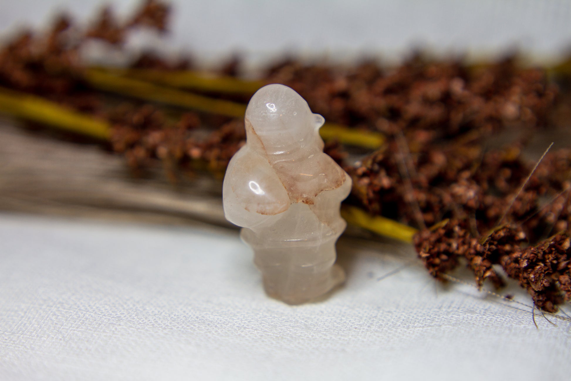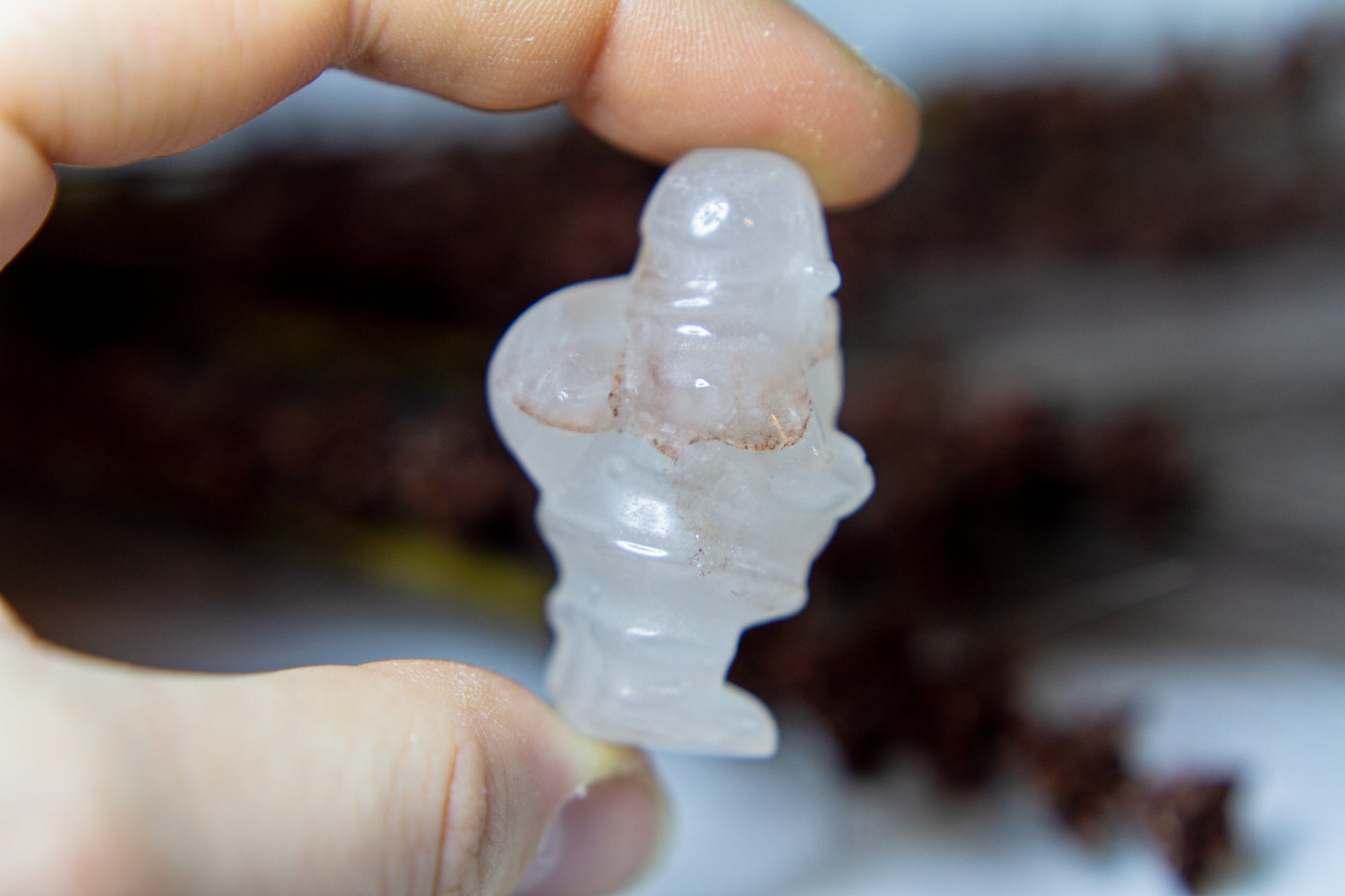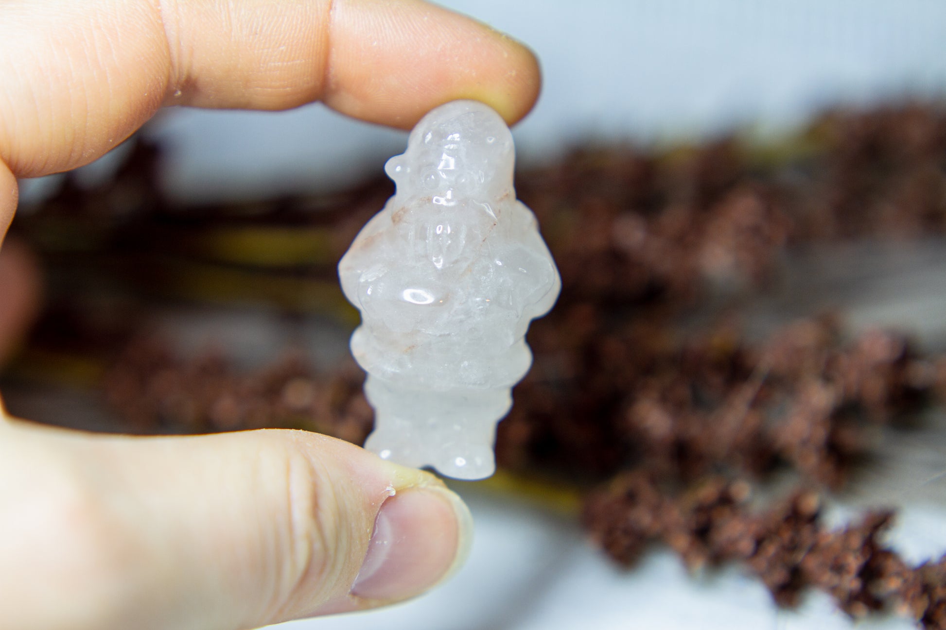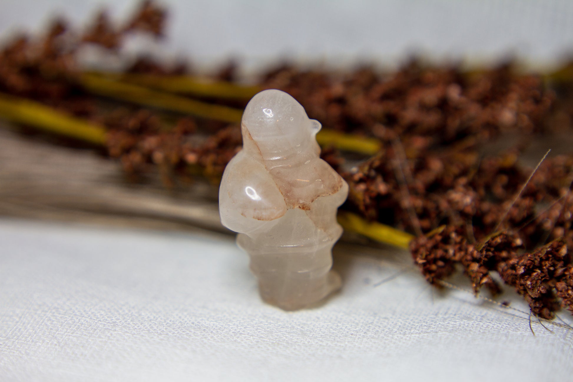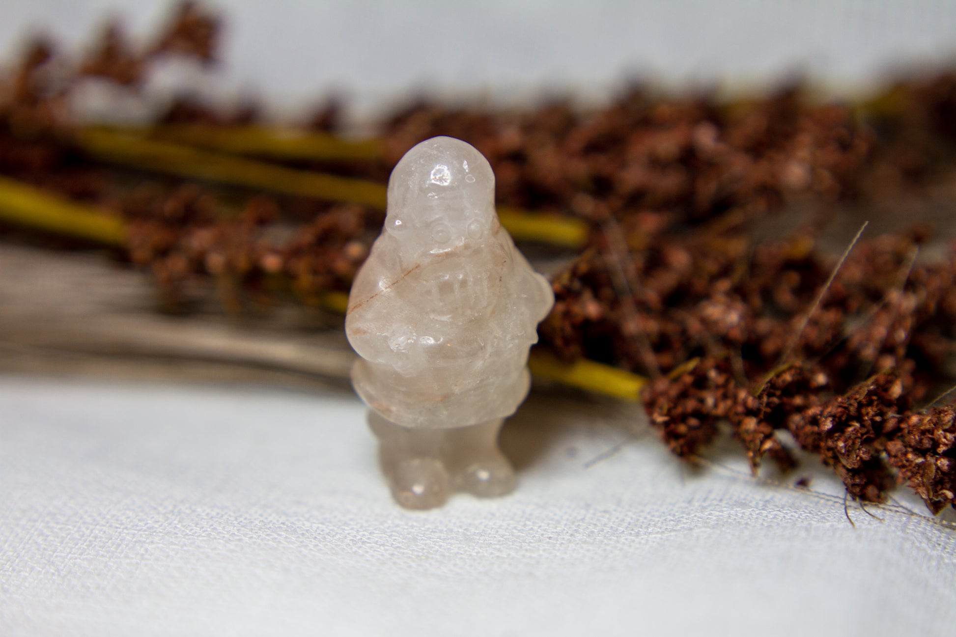 Riktigt fin, klar och glÀnsande jultomte i kristallen kvarts med golden healer. Tomten Àr ljus och glansig med fÀrska inklusioner av golden healer, och Àr ca 4,3cm hög!