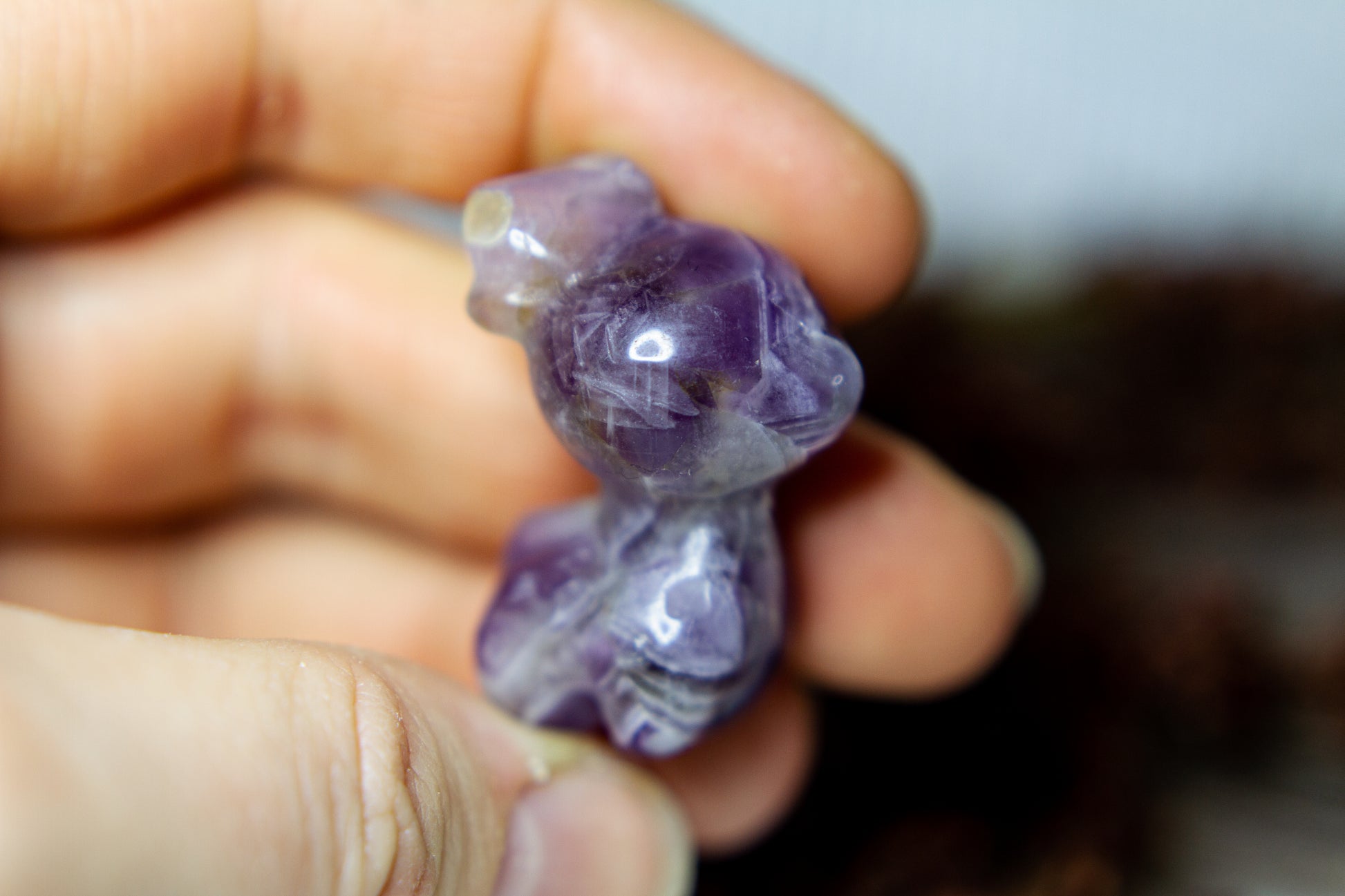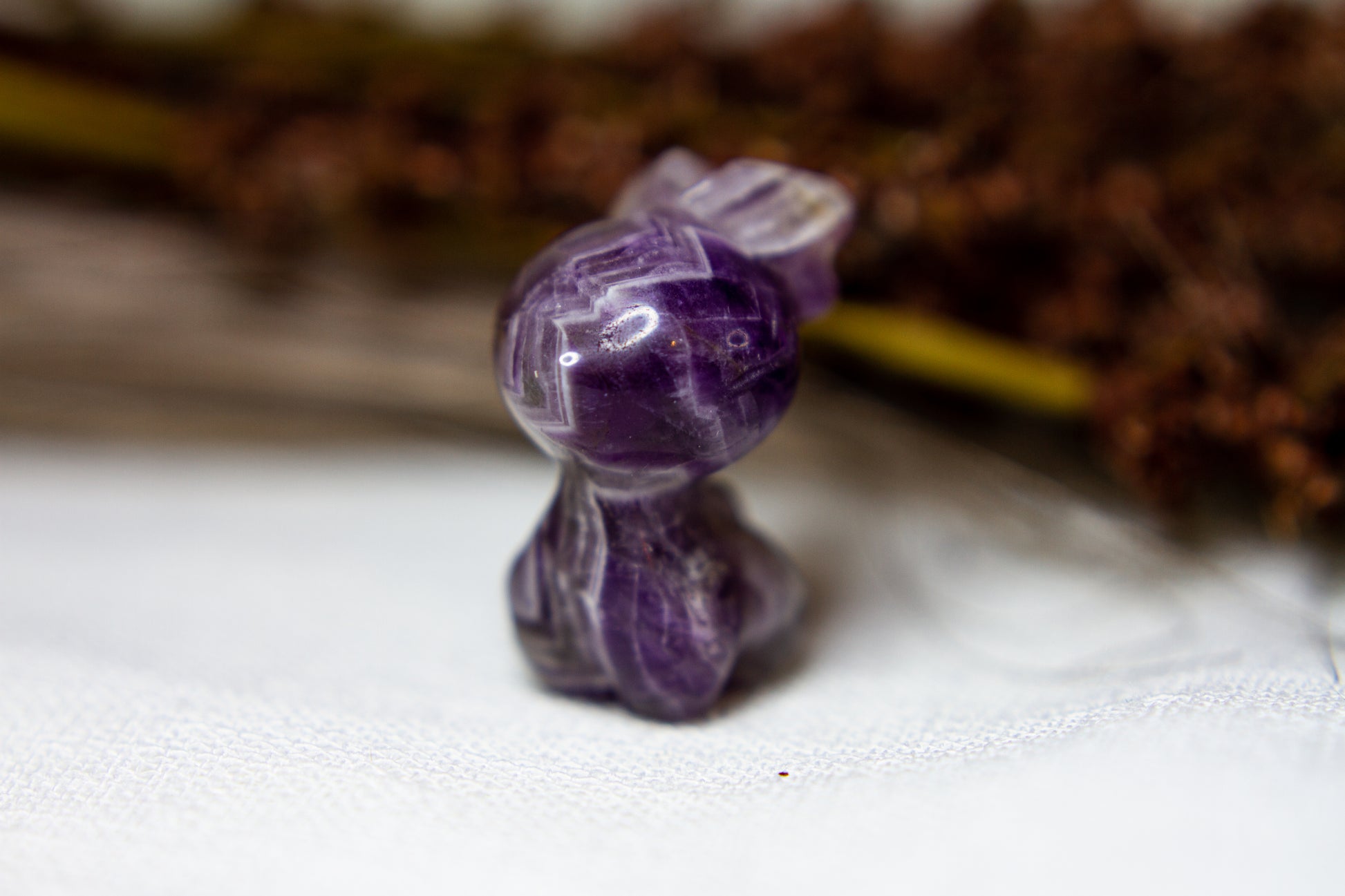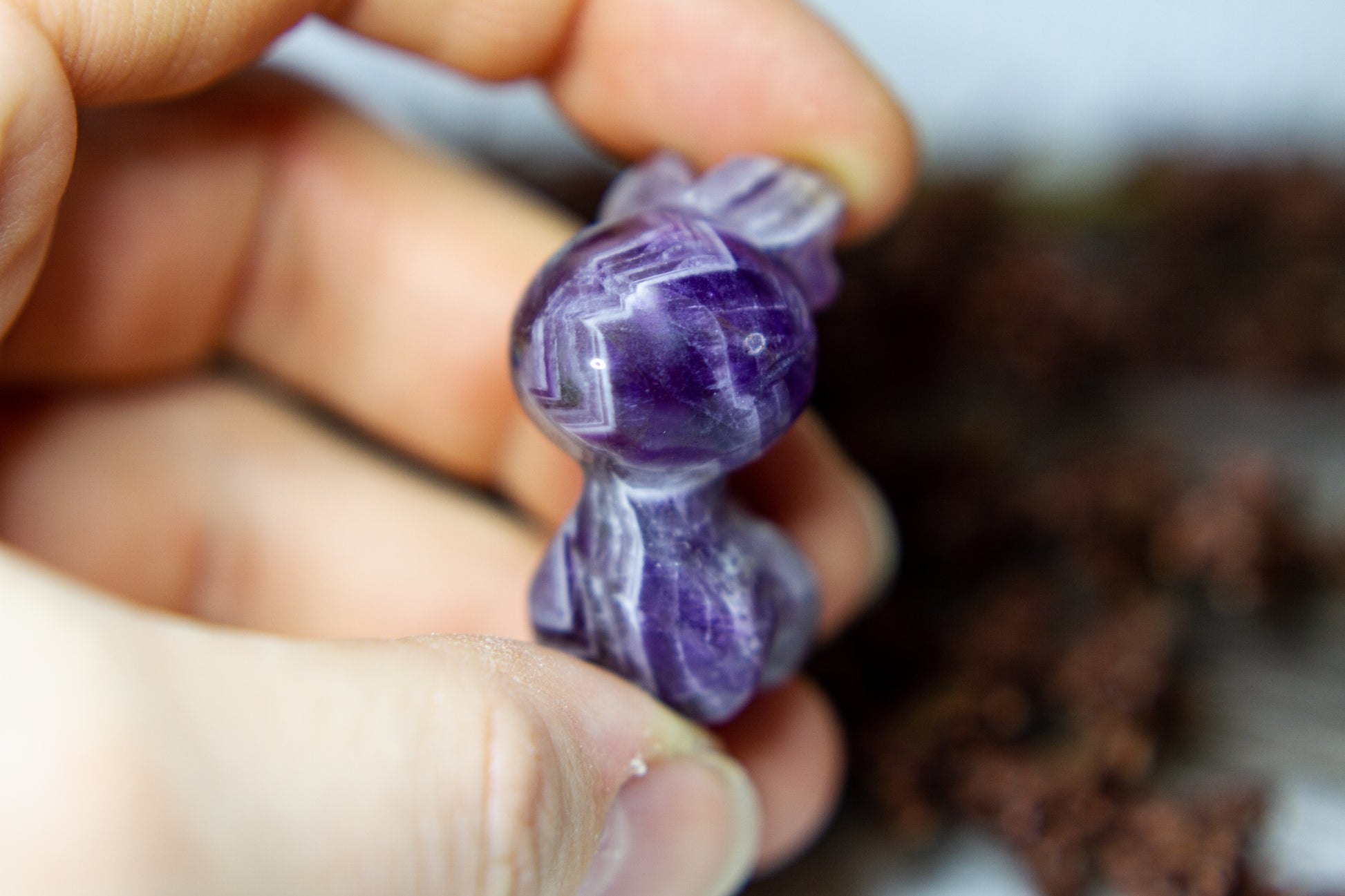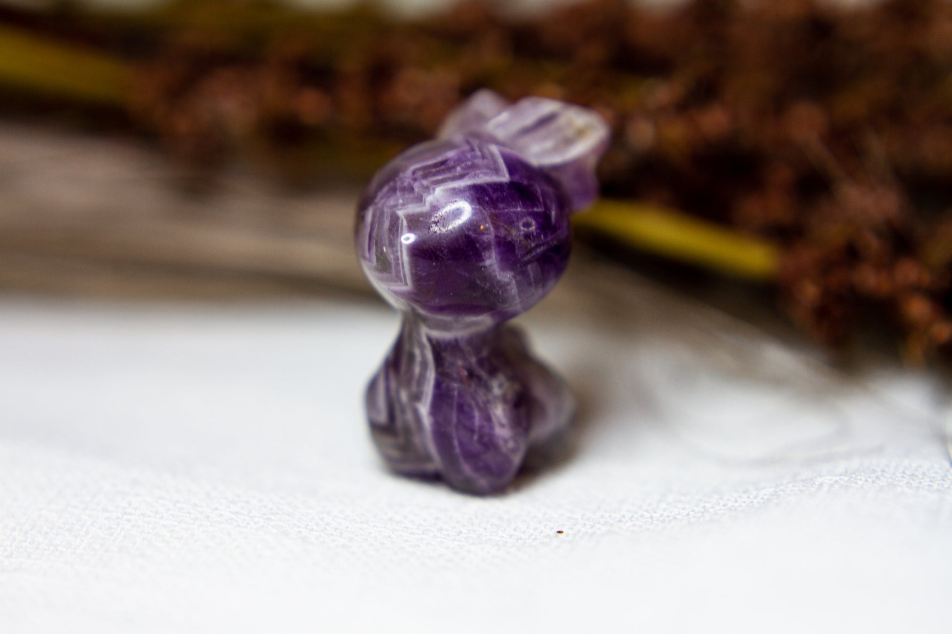 Otroligt vacker, fÀrgstark och glÀnsande ren i chevron ametist, alltsÄ ametist med bandning (chevron). Renen Àr otroligt vÀlgjord och slÀt, och Àr ca 3,5cm hög! [Kristallen pÄ bilderna Àr den som sÀljs]