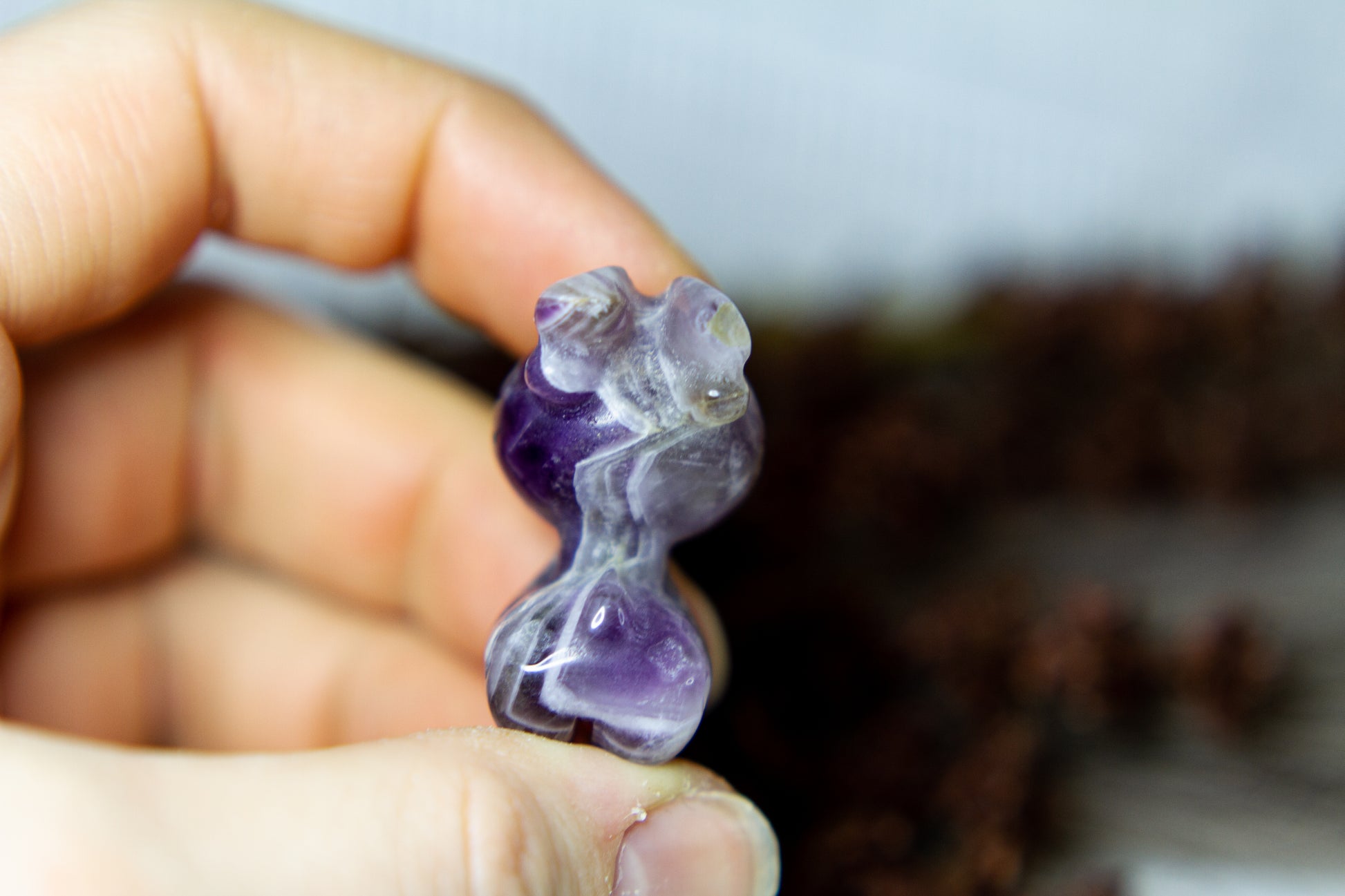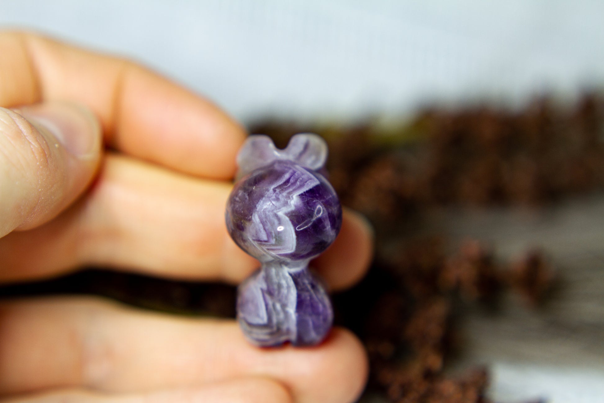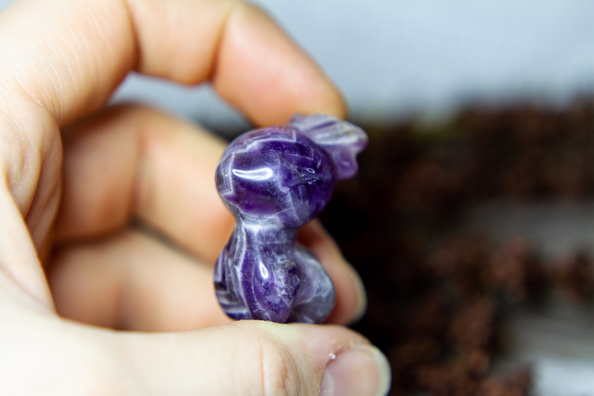 Otroligt vacker, fÀrgstark och glÀnsande ren i chevron ametist, alltsÄ ametist med bandning (chevron). Renen Àr otroligt vÀlgjord och slÀt, och Àr ca 3,5cm hög! [Kristallen pÄ bilderna Àr den som sÀljs]