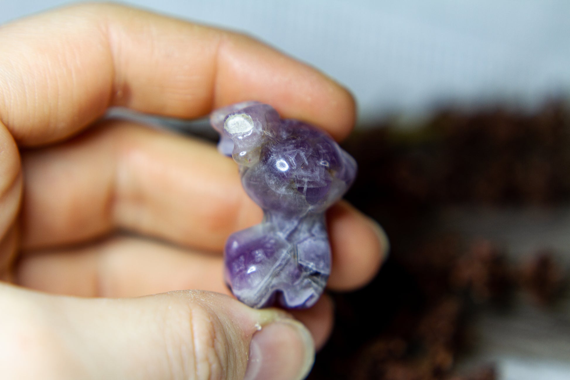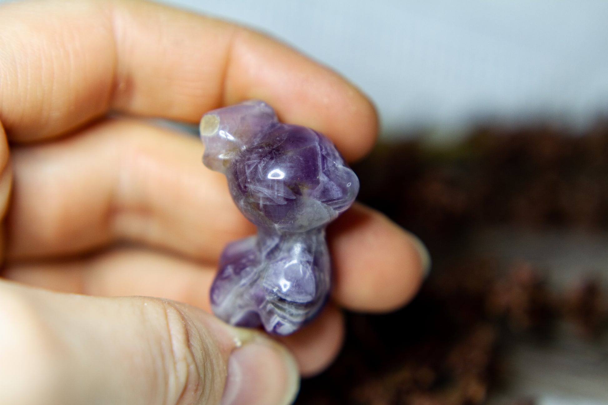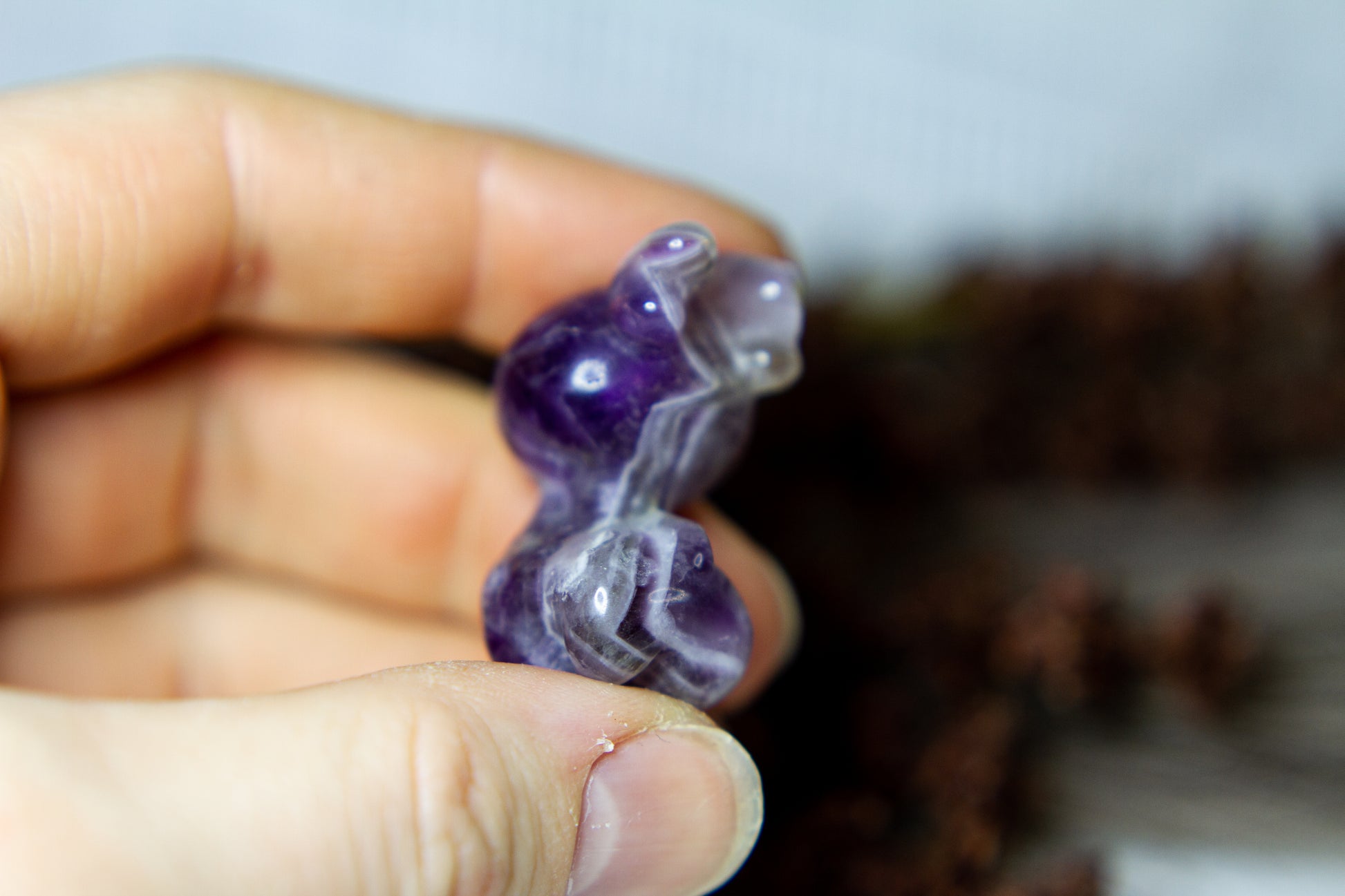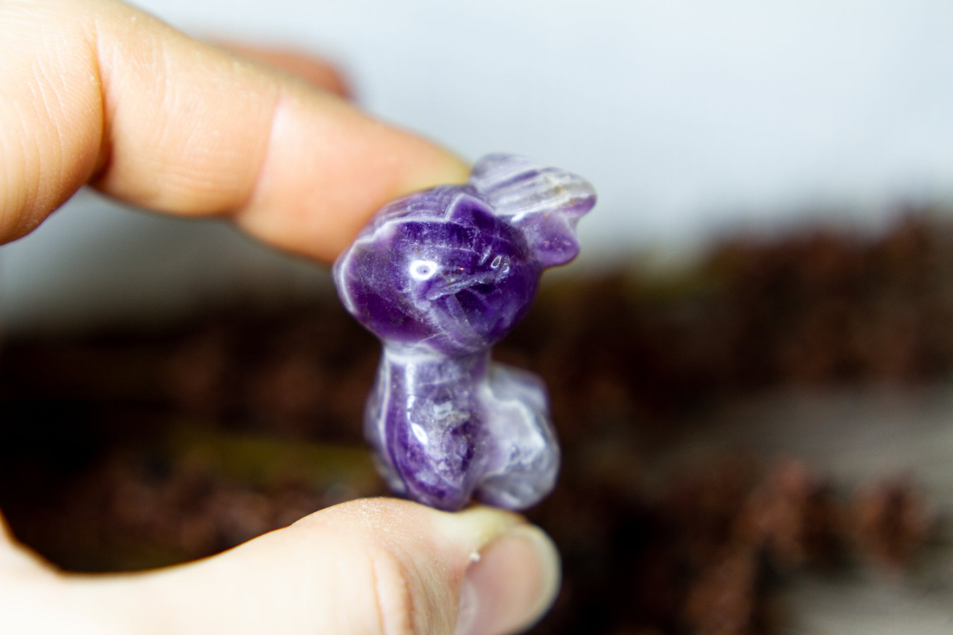 Otroligt vacker, fÀrgstark och glÀnsande ren i chevron ametist, alltsÄ ametist med bandning (chevron). Renen Àr otroligt vÀlgjord och slÀt, och Àr ca 3,5cm hög! [Kristallen pÄ bilderna Àr den som sÀljs]