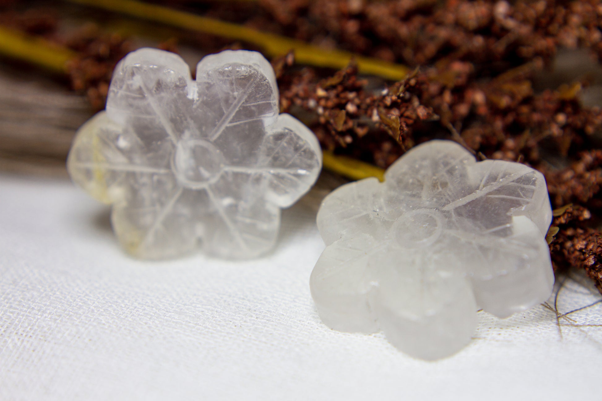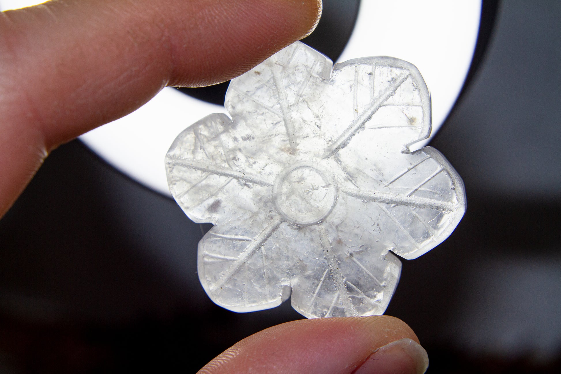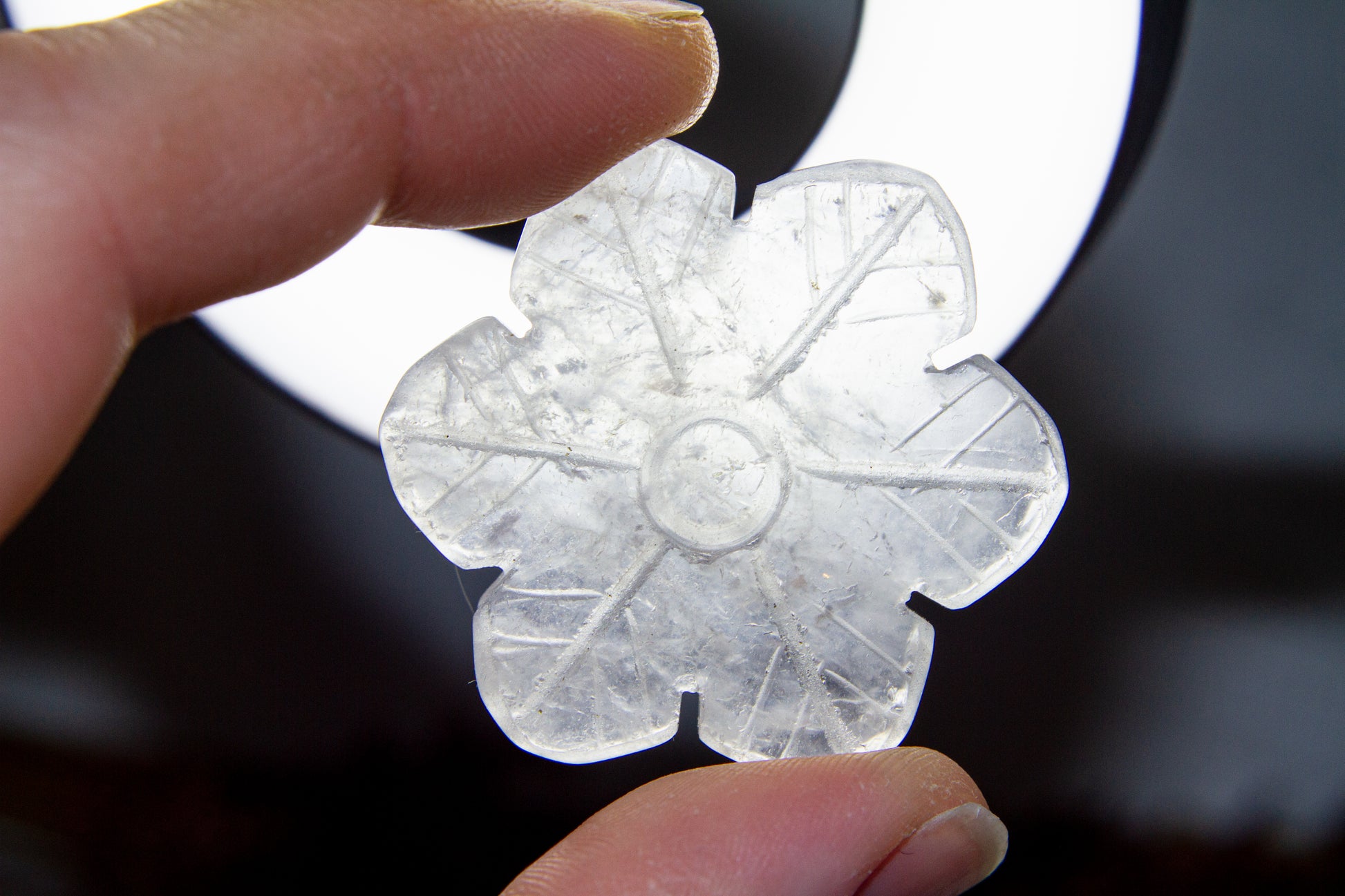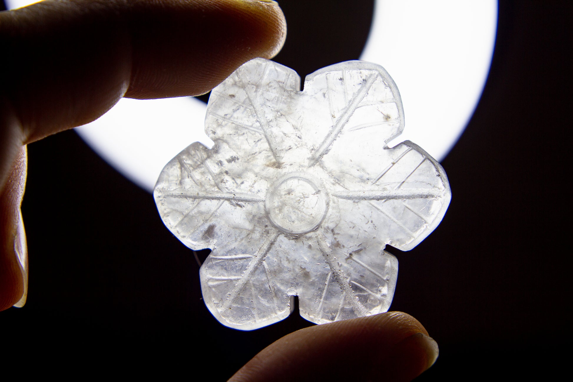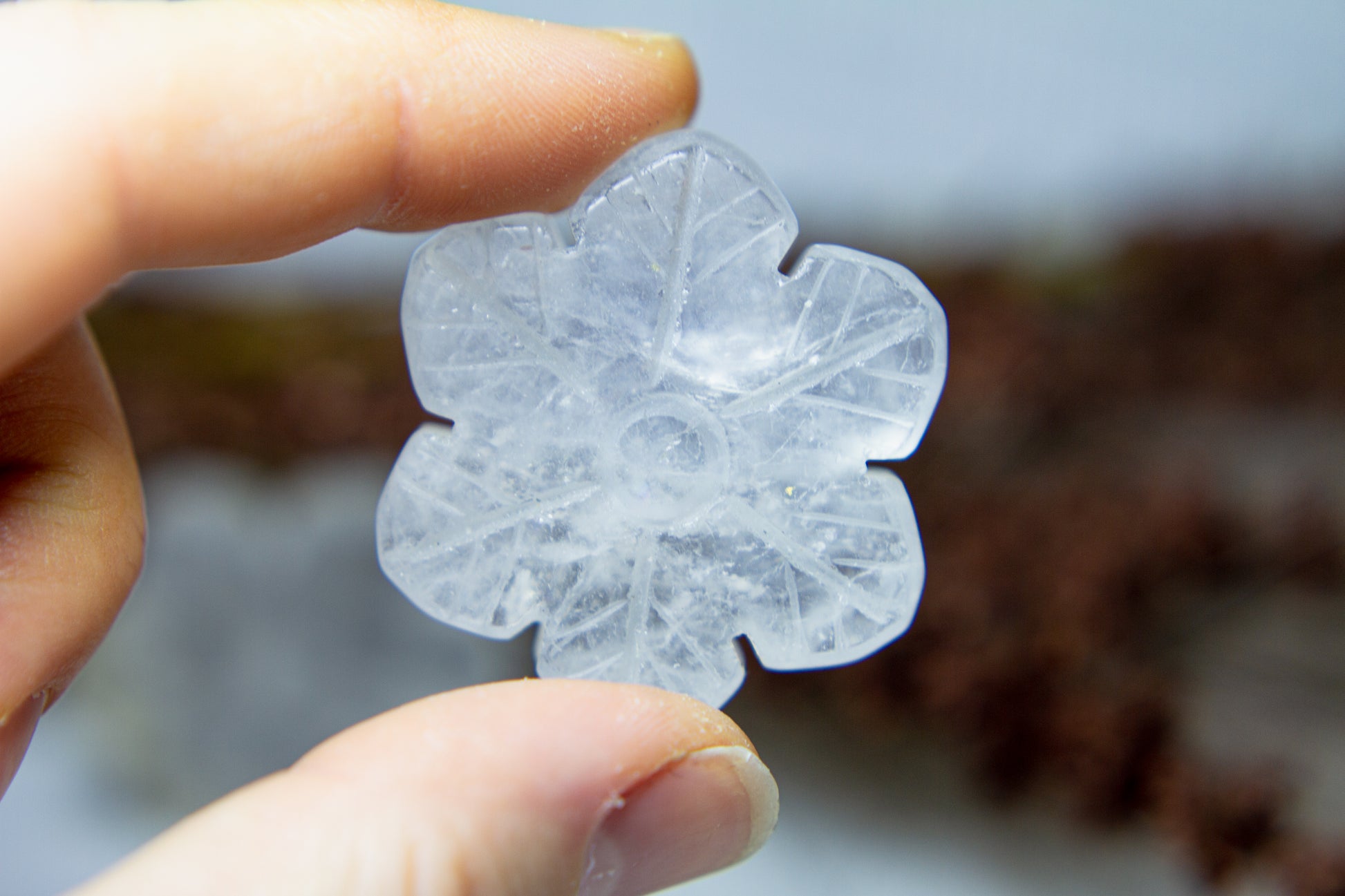 Otroligt vackra, glansiga och glasklara snöflingor i kristallen bergkristall MED inklusioner. Snöflingorna har ett fint transparant sken med fina varma inklusioner, och de är ca 4,1cm i diameter [Kristallerna på bilderna är de som säljs] ❆❆