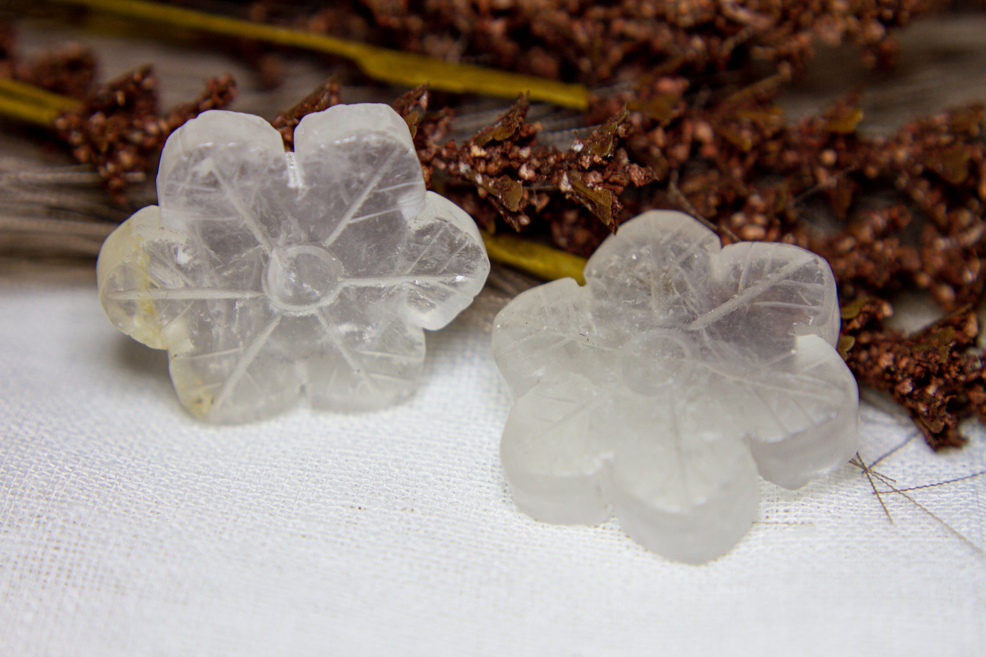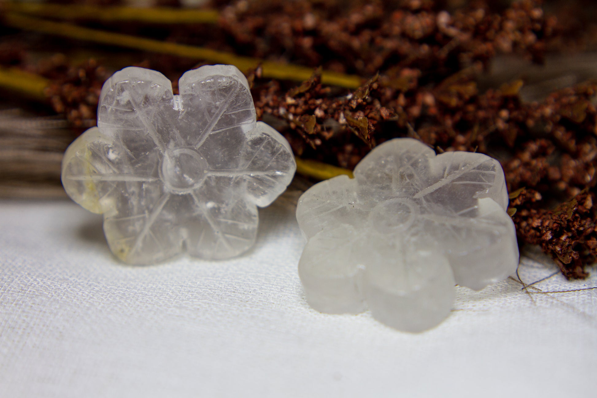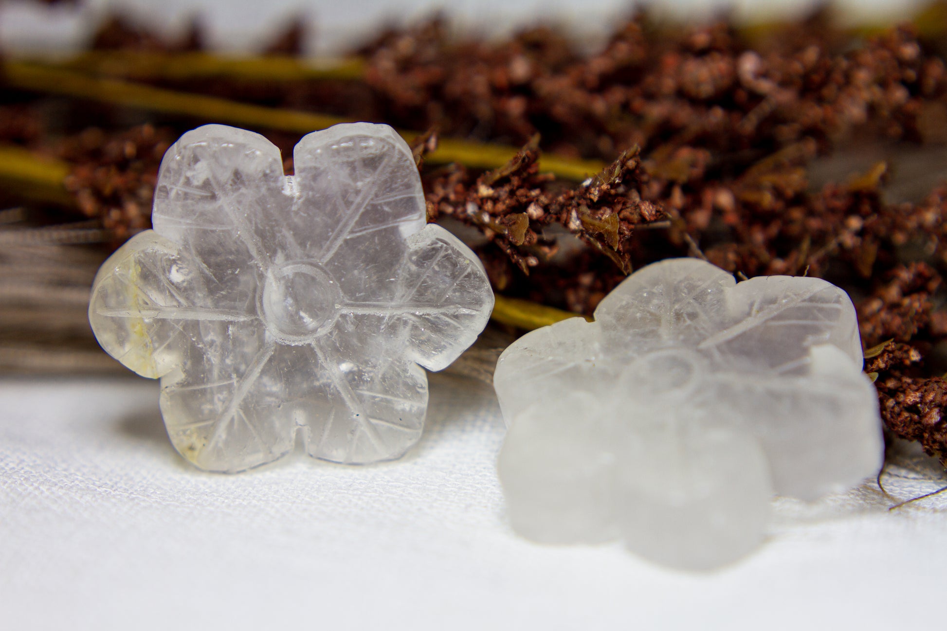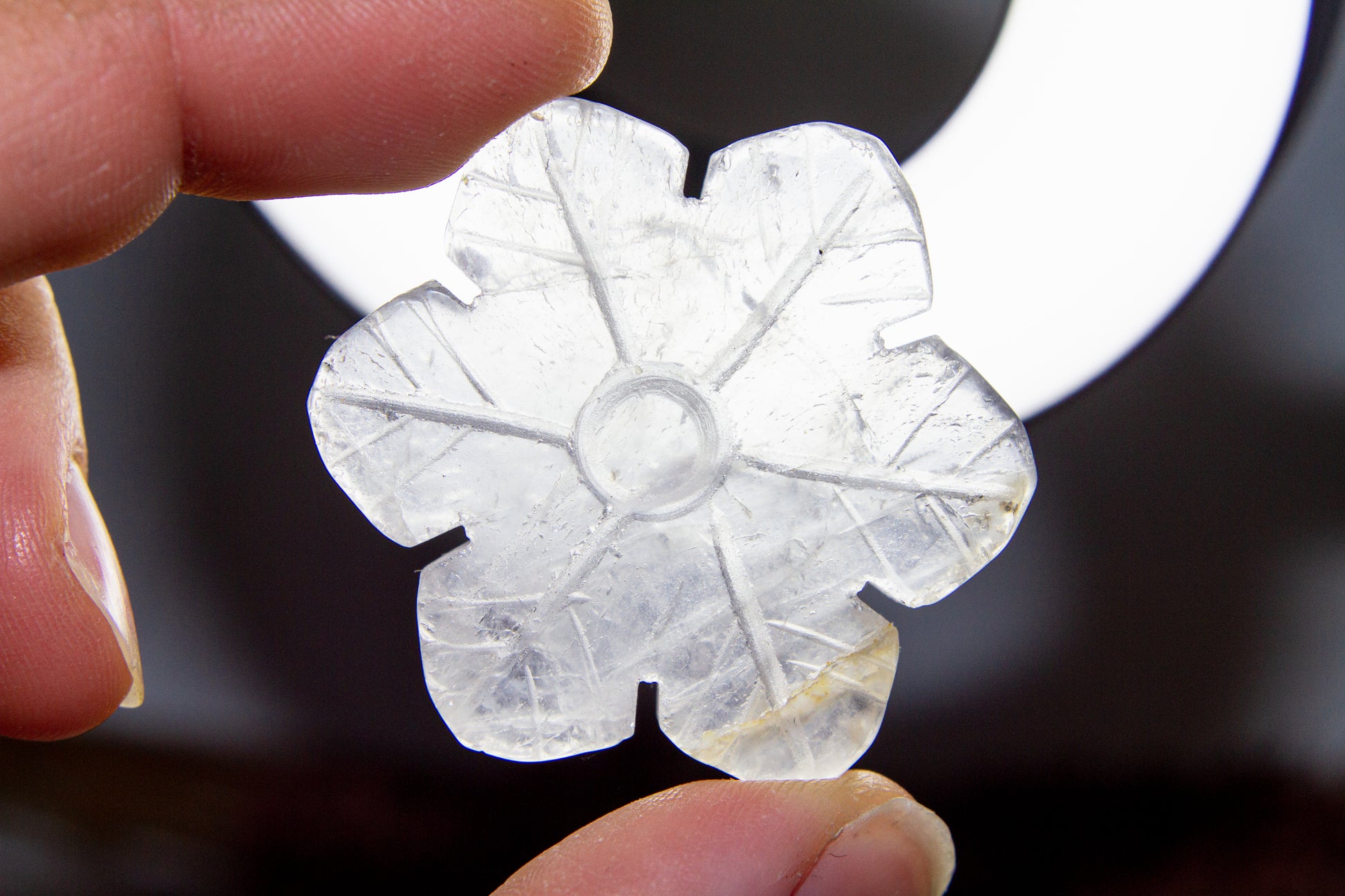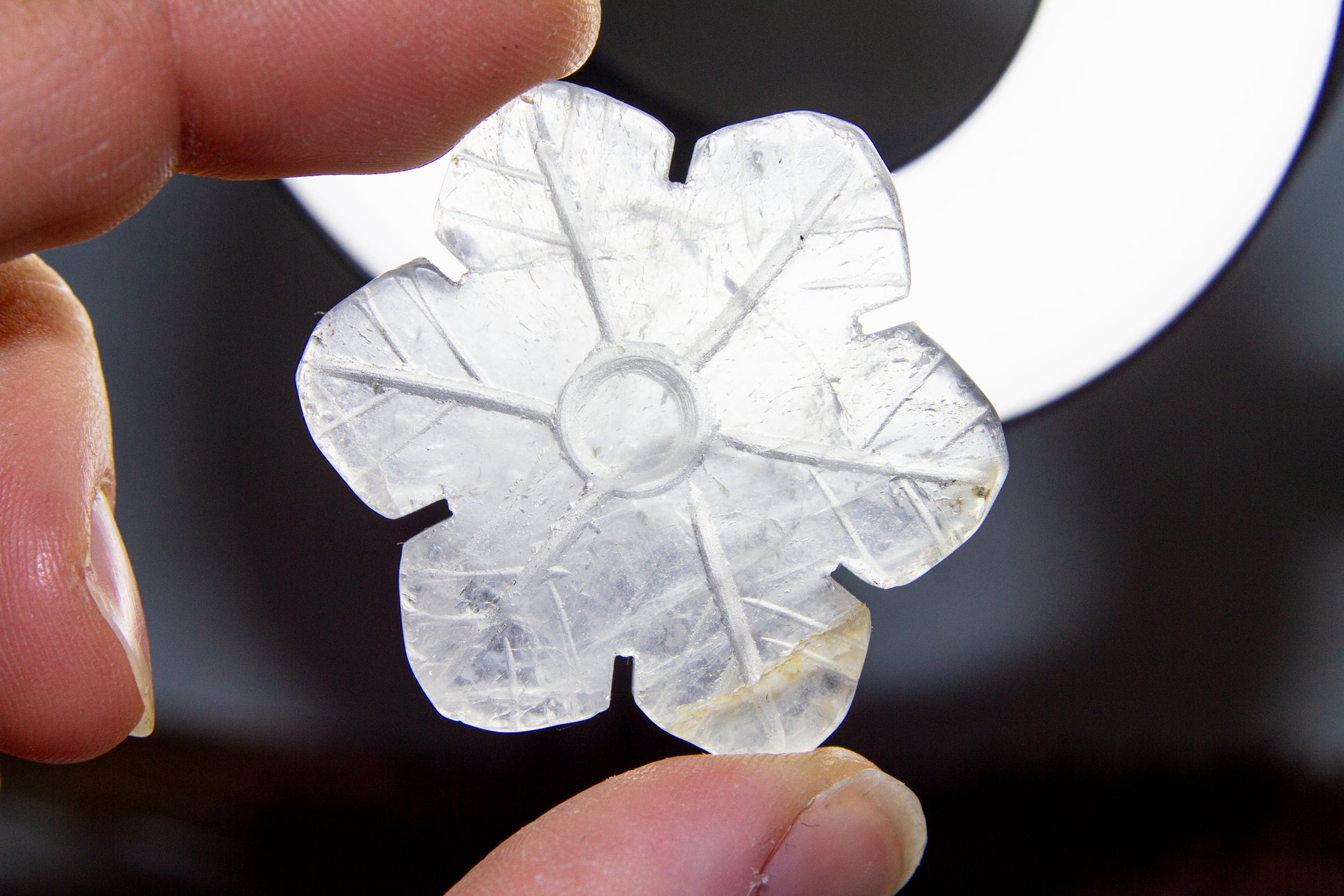 Otroligt vackra, glansiga och glasklara snöflingor i kristallen bergkristall MED inklusioner. Snöflingorna har ett fint transparant sken med fina varma inklusioner, och de är ca 4,1cm i diameter [Kristallerna på bilderna är de som säljs] ❆❆