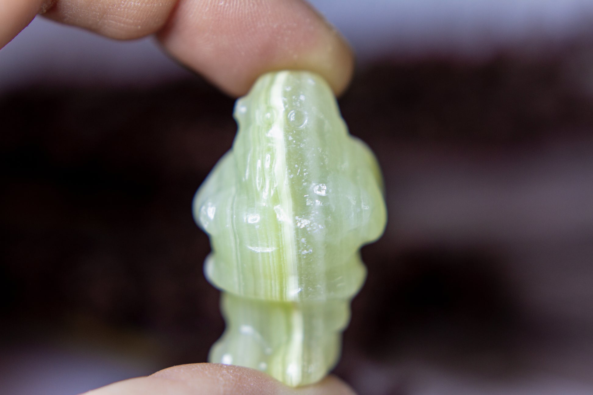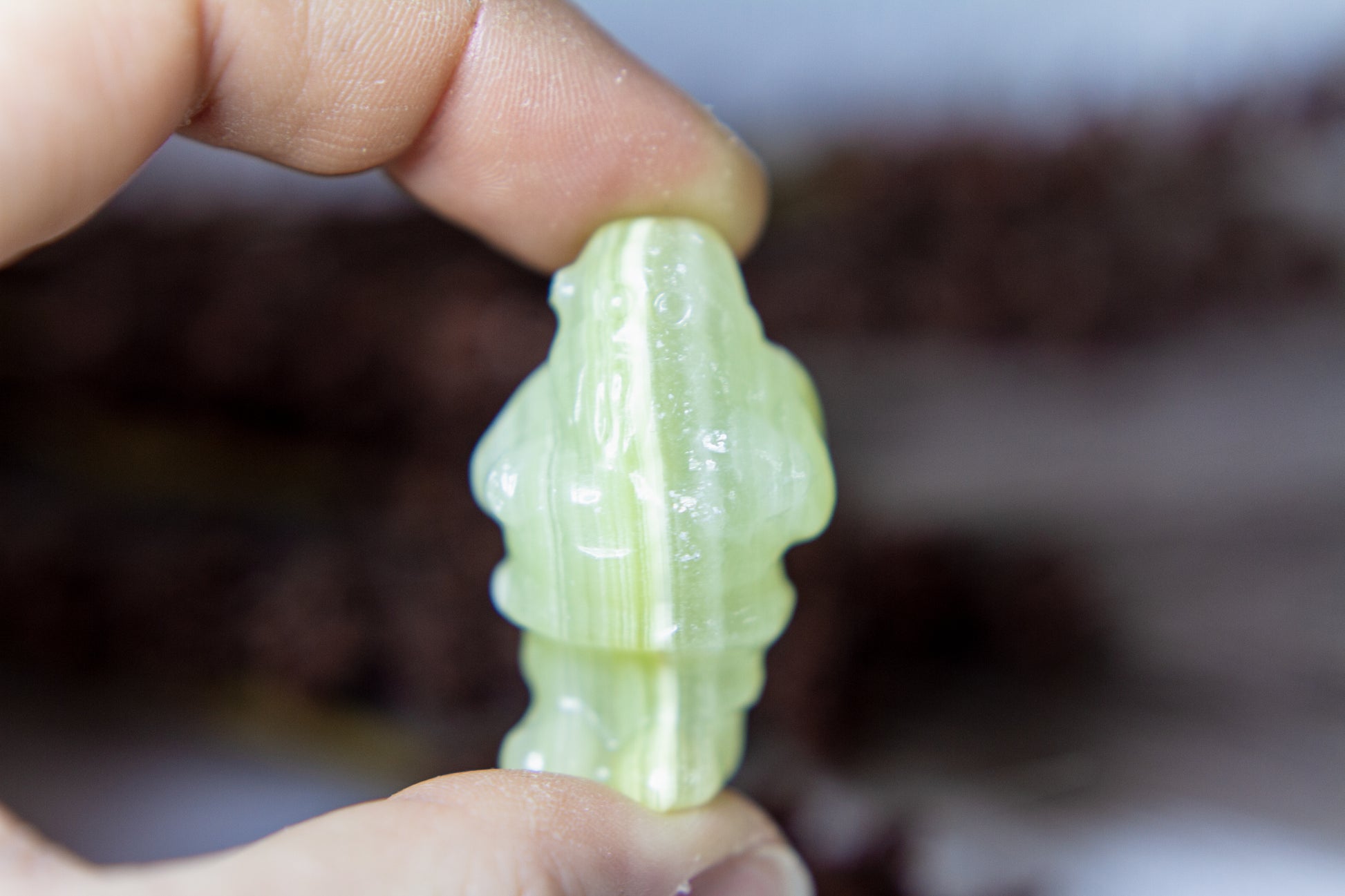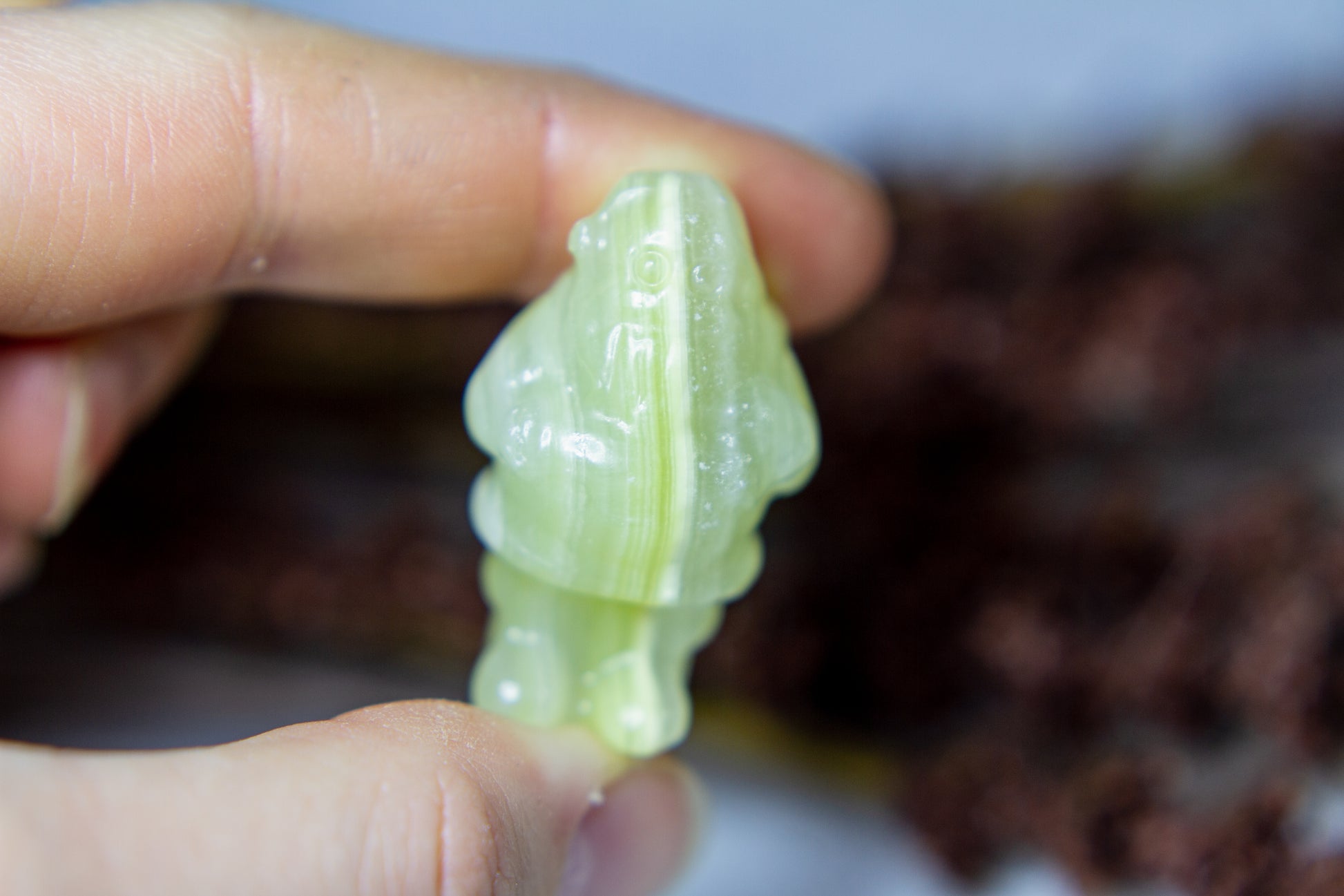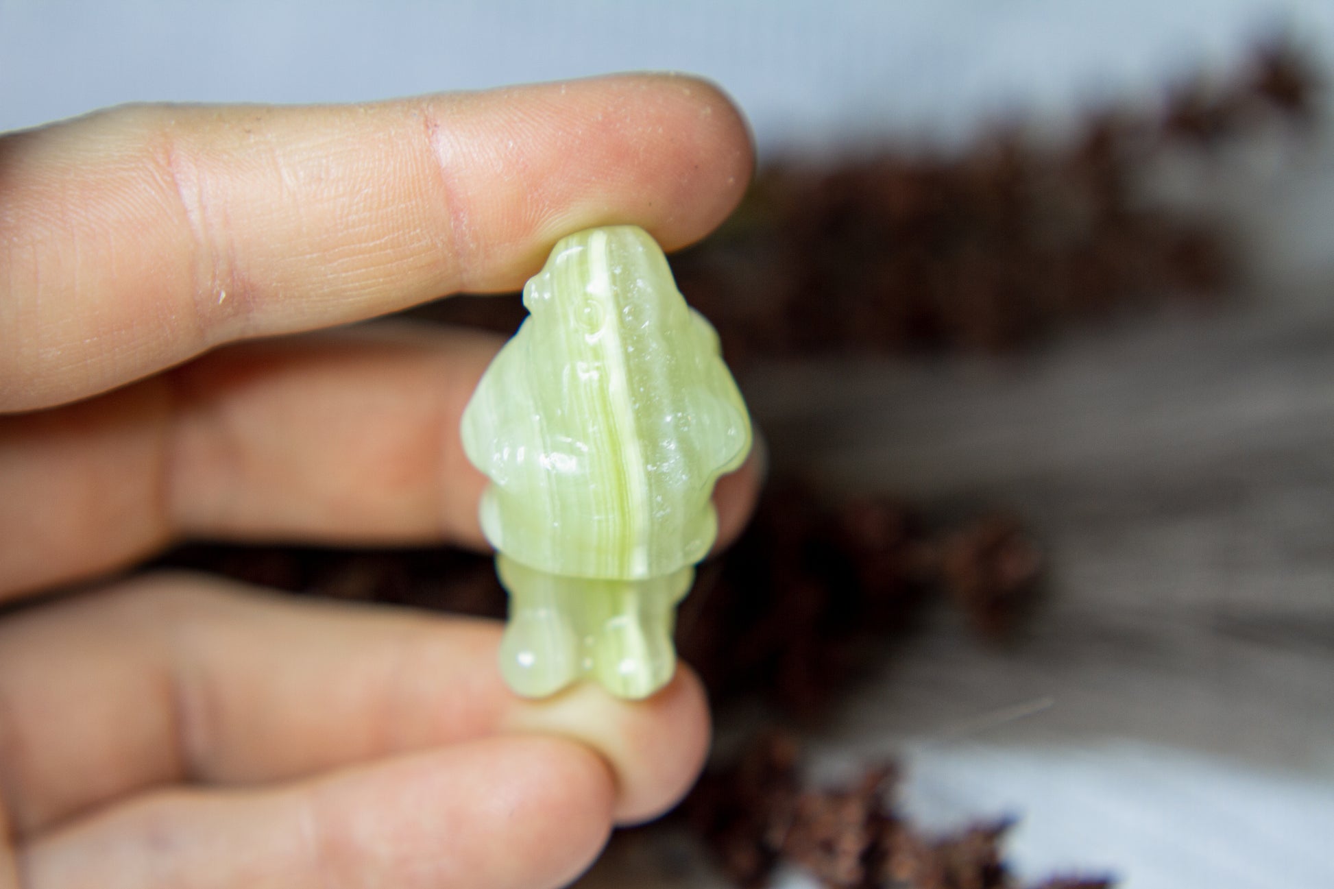 Riktigt juicy, fÀrgskarp och vackert bandad jultomte i kristallen grön onyx, Àven kÀnd som bandad grön kalcit. Tomten stÄr stabilt i sina fina bandade gröna nyanser, och Àr ca 3,75cm hög! [Kristallen pÄ bilderna Àr den som sÀljs]
