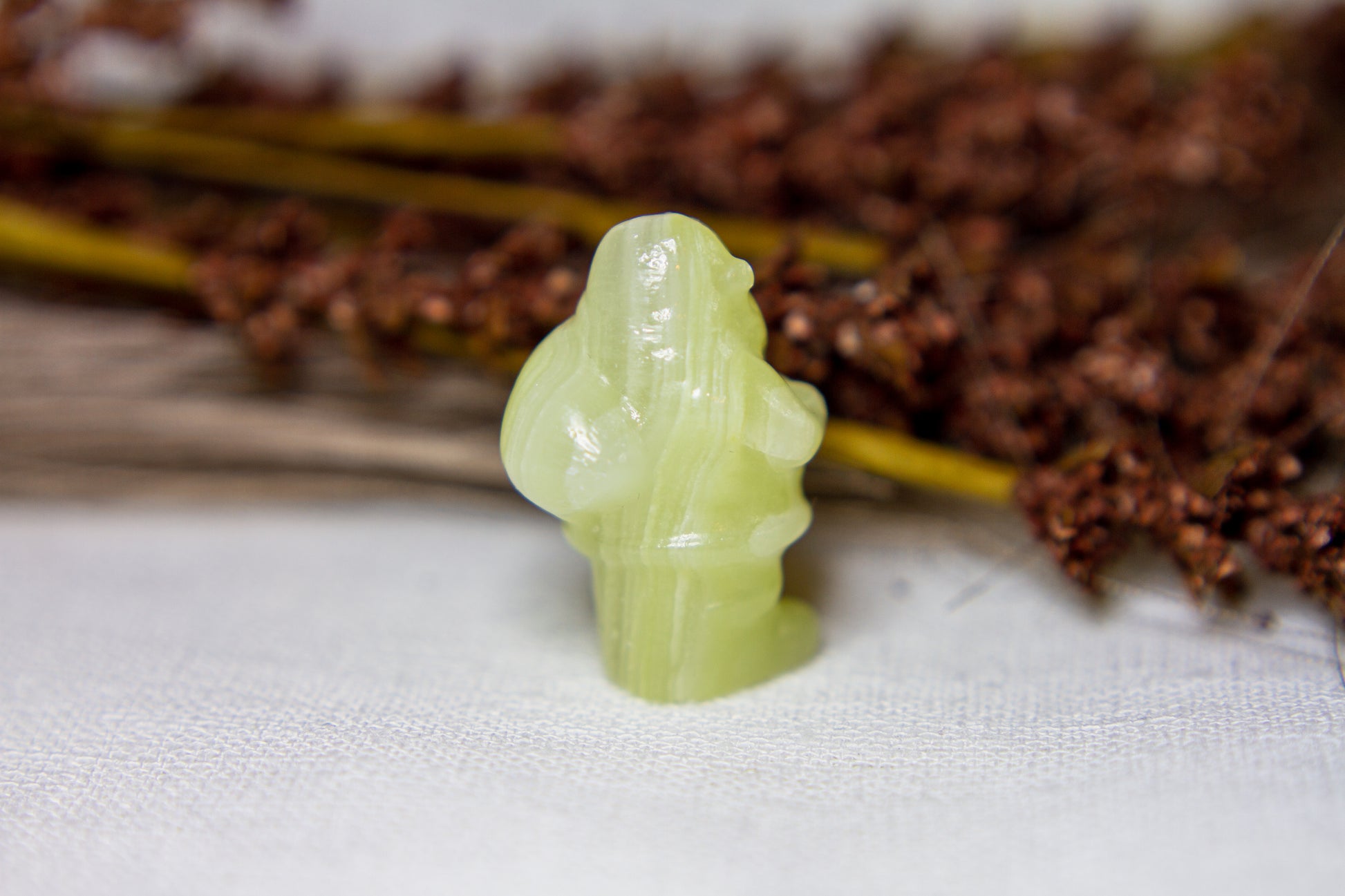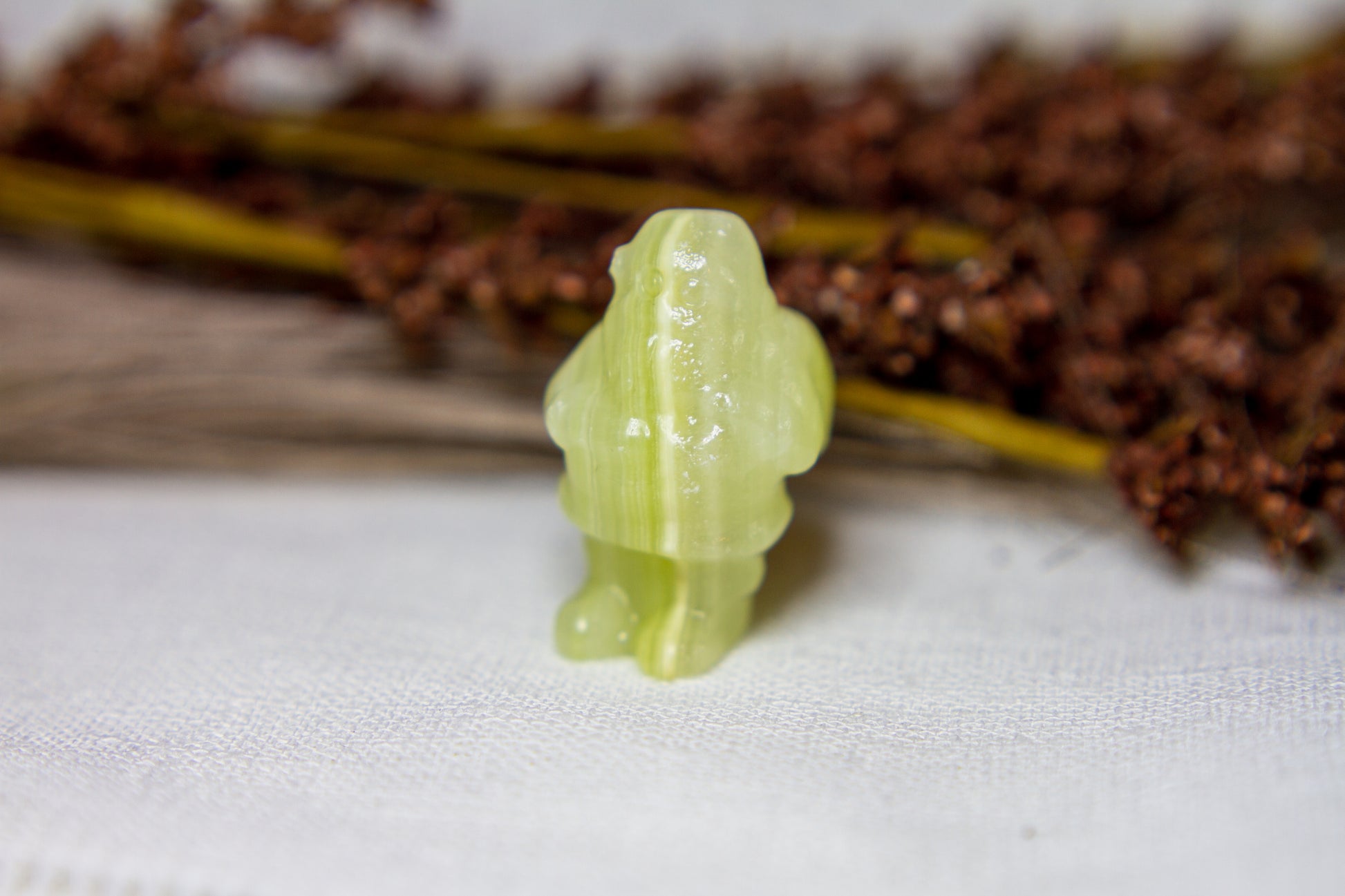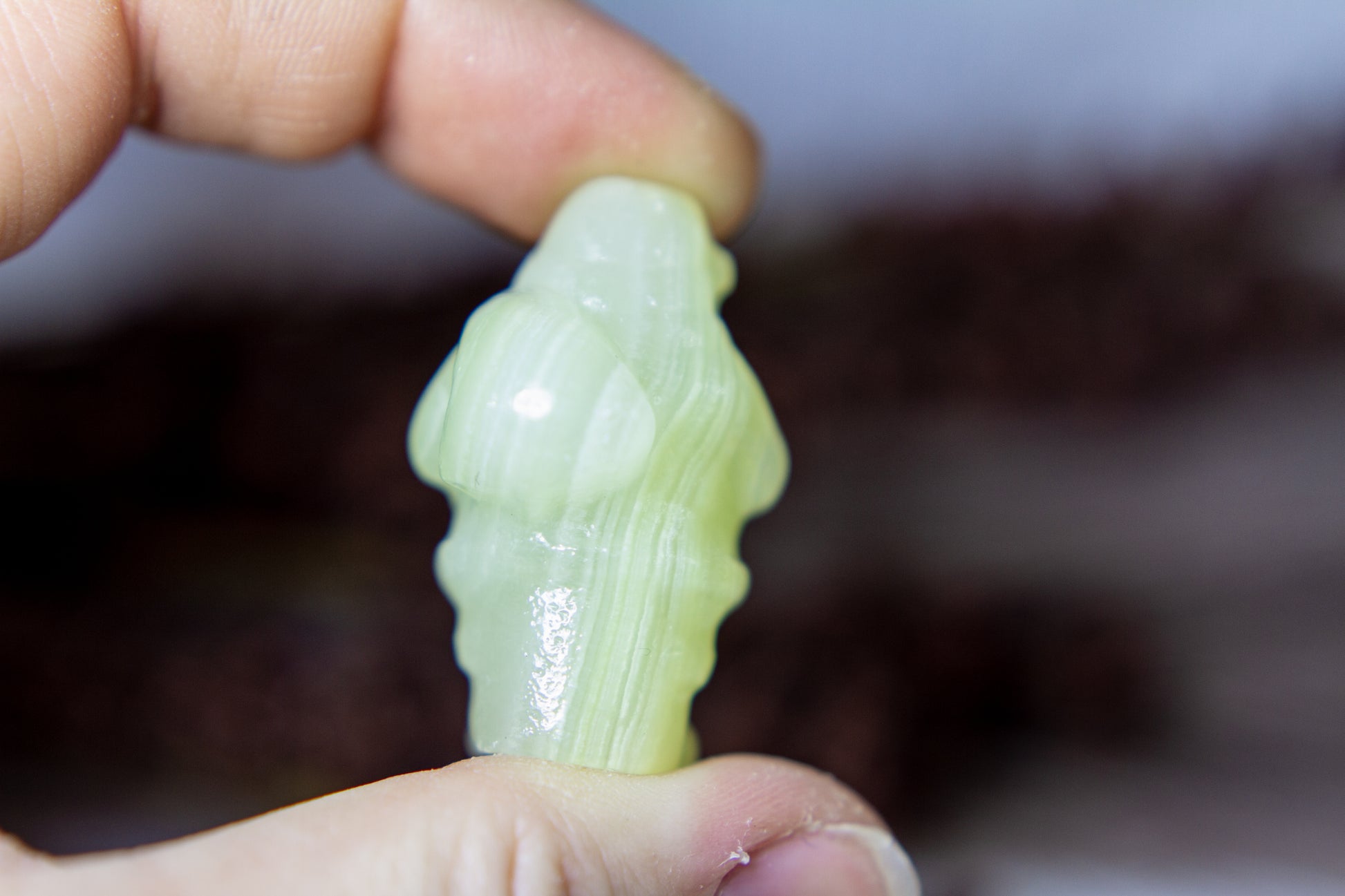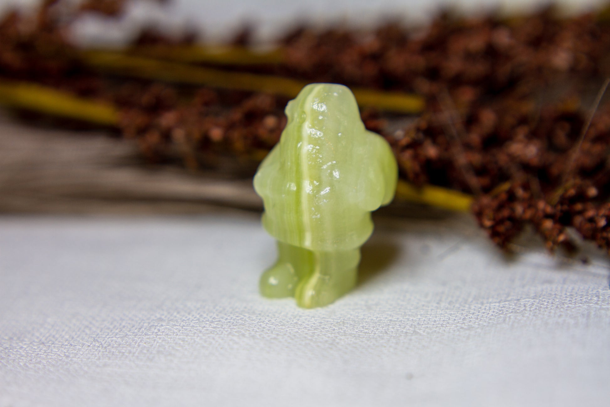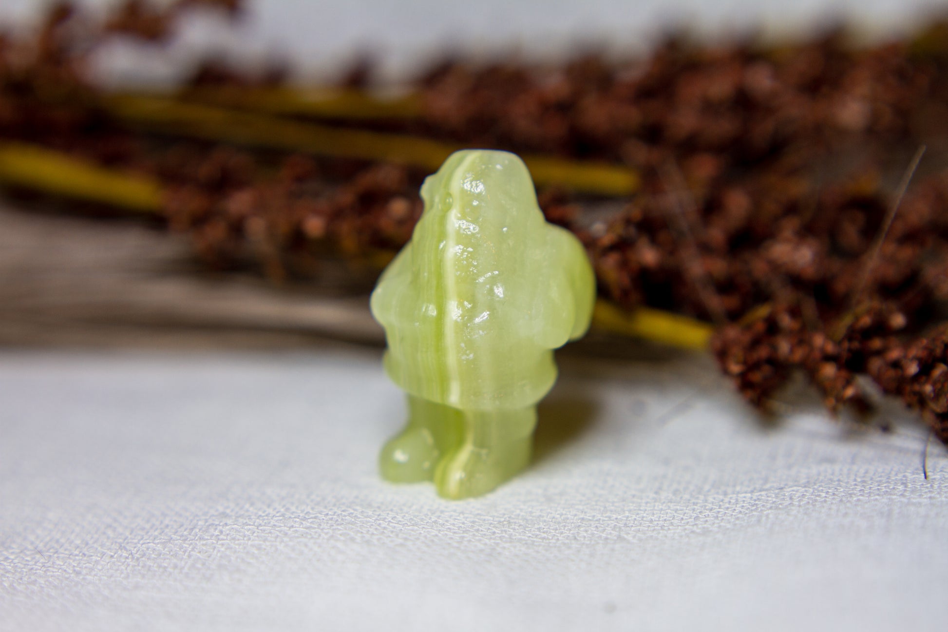 Riktigt juicy, fÀrgskarp och vackert bandad jultomte i kristallen grön onyx, Àven kÀnd som bandad grön kalcit. Tomten stÄr stabilt i sina fina bandade gröna nyanser, och Àr ca 3,75cm hög! [Kristallen pÄ bilderna Àr den som sÀljs]