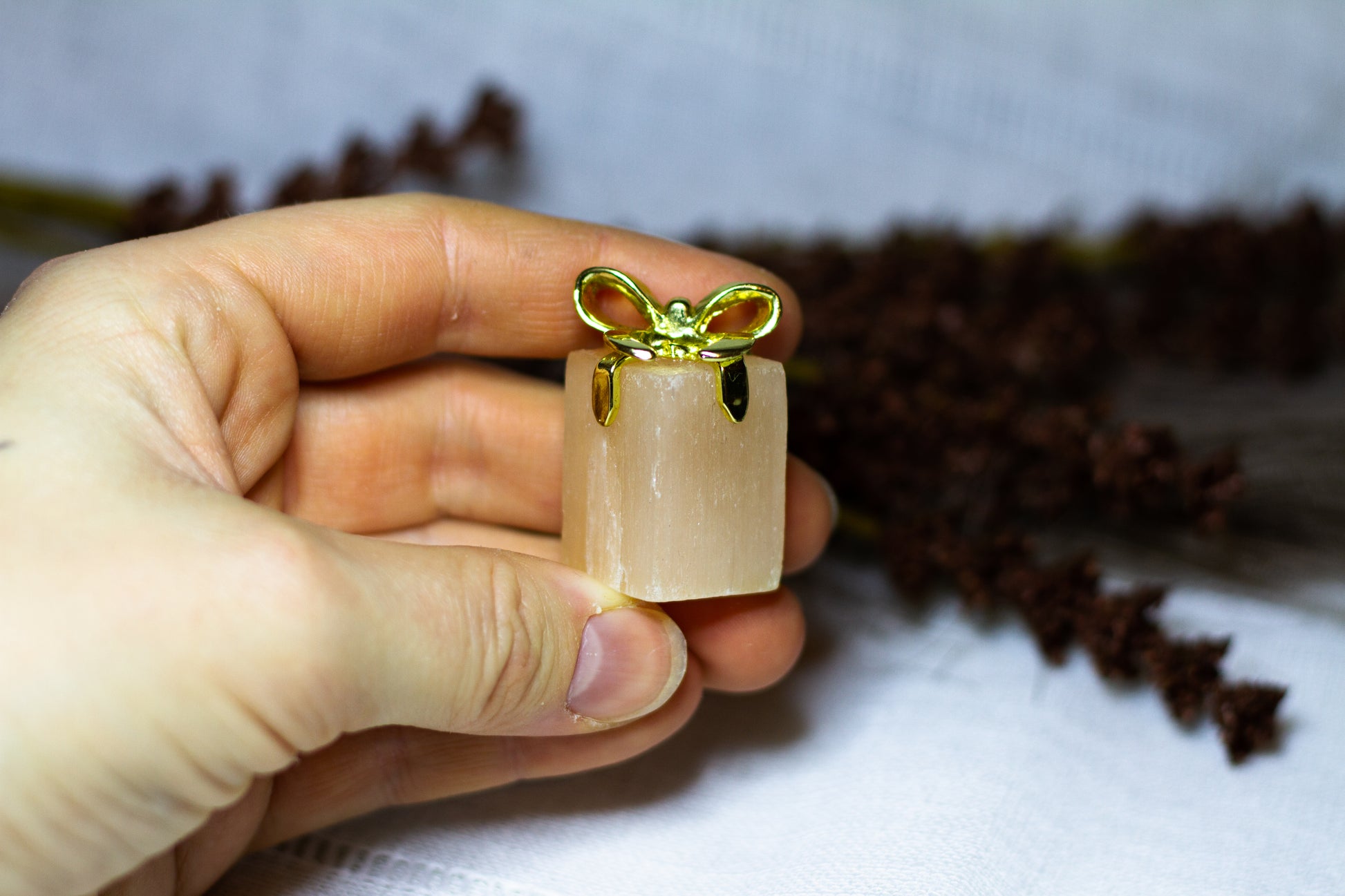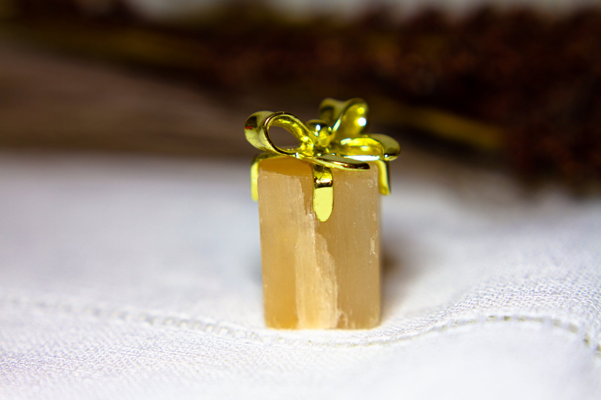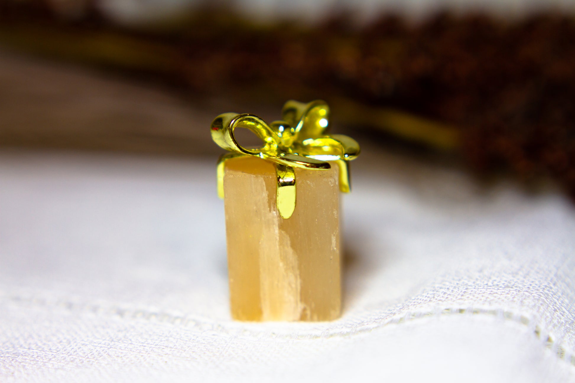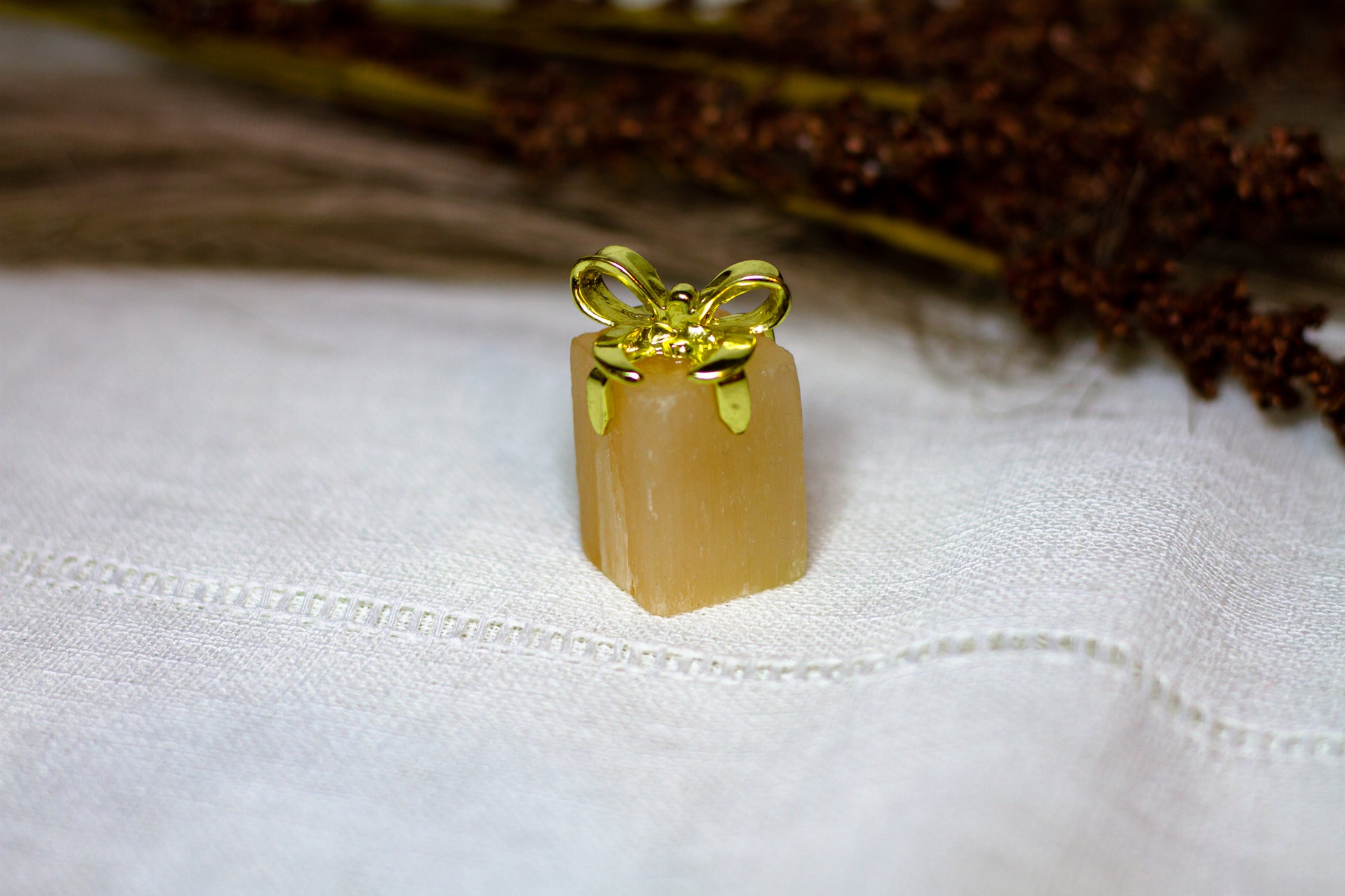 Otroligt söt, vÀlgjord och fÀrgglad julklapp i den helande och motiverande kristallen orange selenit. Julklappen Àr riktigt lÀcker med sina typiska selenit-flashes, och Àr ca 2,8cm hög! [Kristallen pÄ bilderna Àr den som sÀljs]
