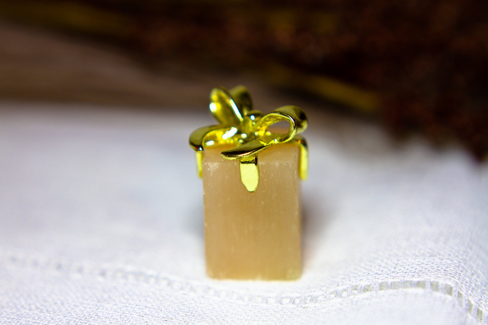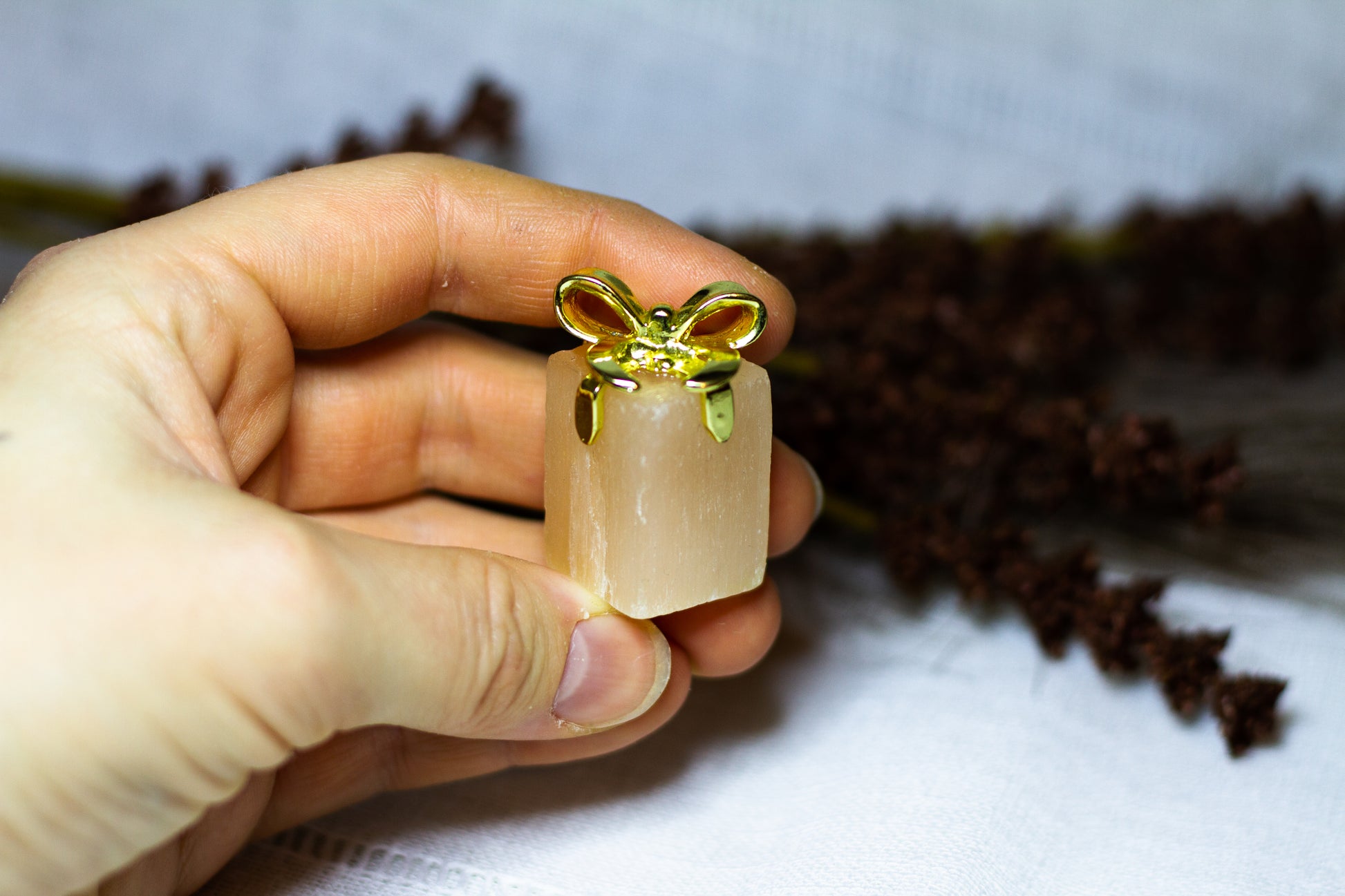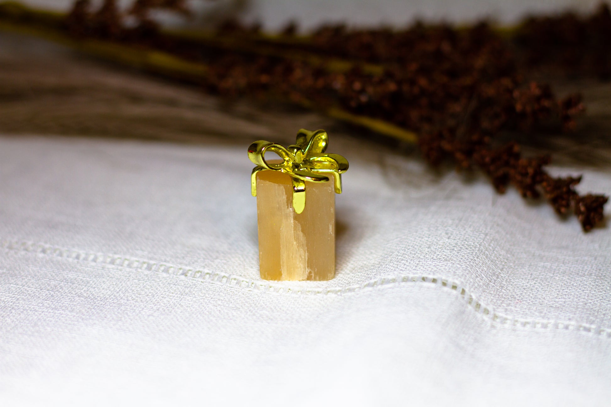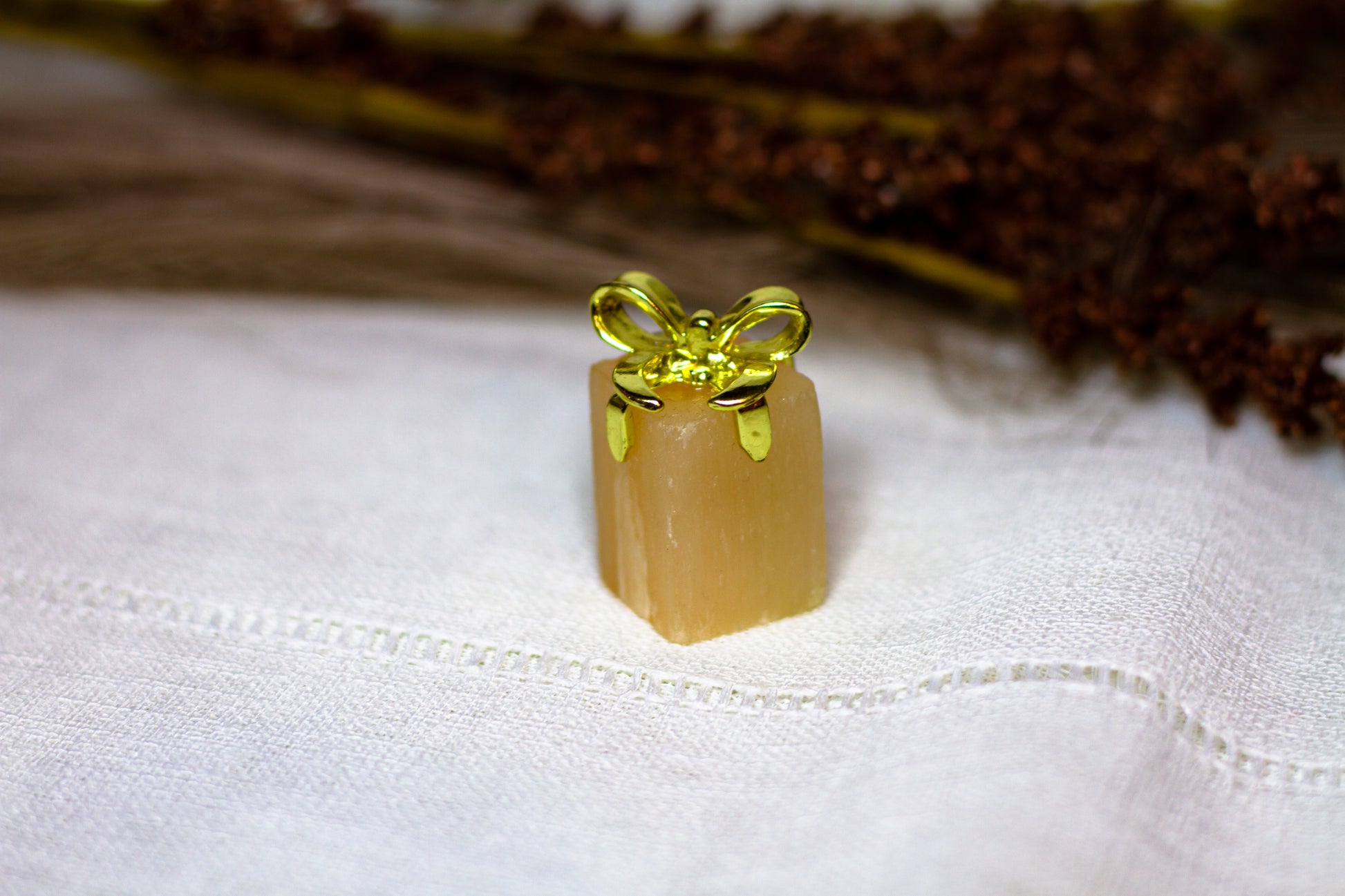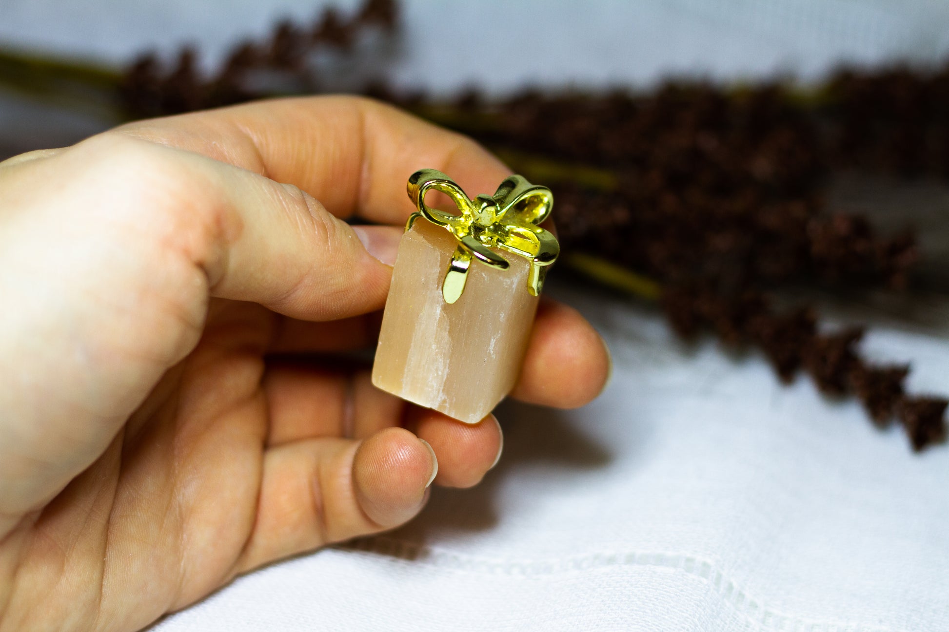 Otroligt söt, vÀlgjord och fÀrgglad julklapp i den helande och motiverande kristallen orange selenit. Julklappen Àr riktigt lÀcker med sina typiska selenit-flashes, och Àr ca 2,8cm hög! [Kristallen pÄ bilderna Àr den som sÀljs]