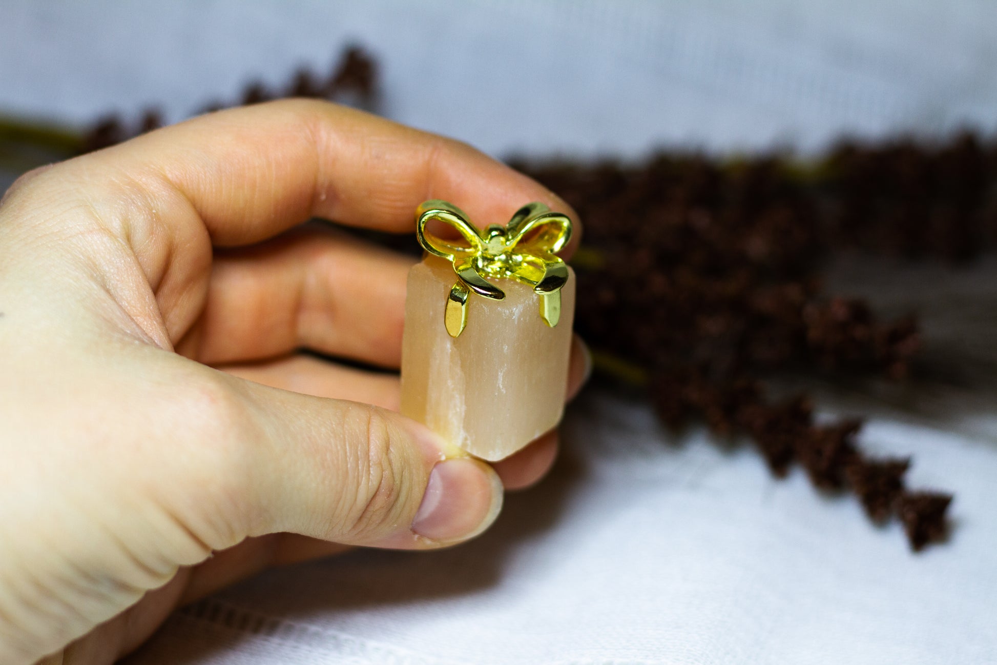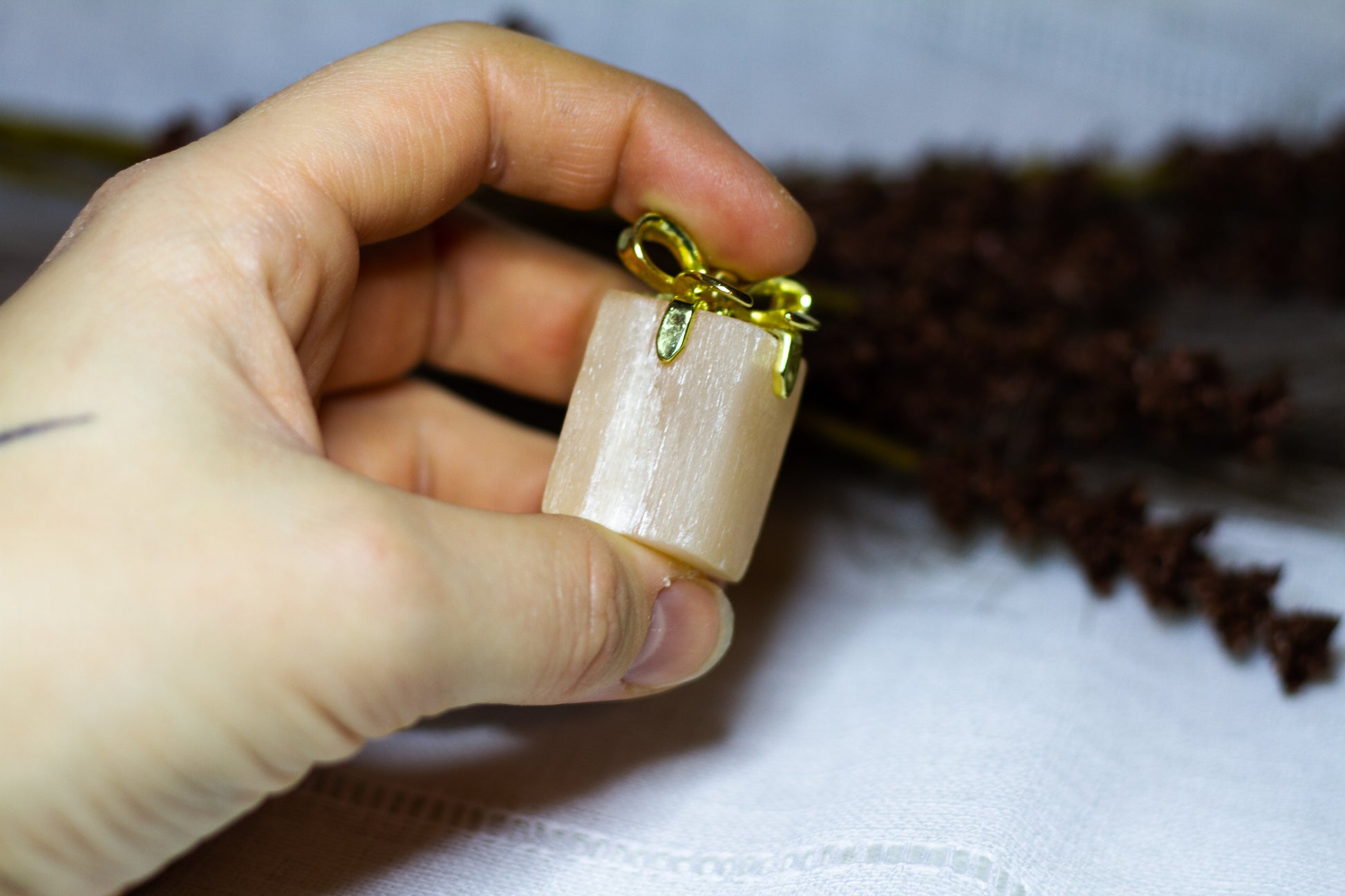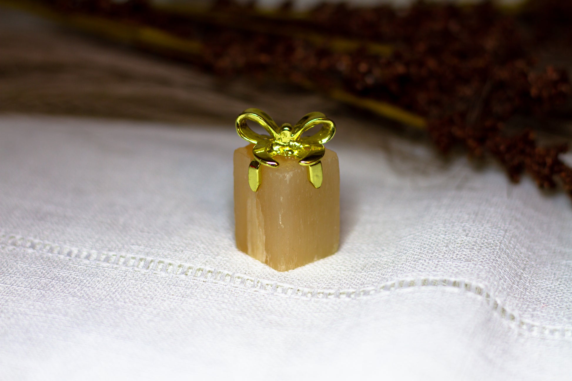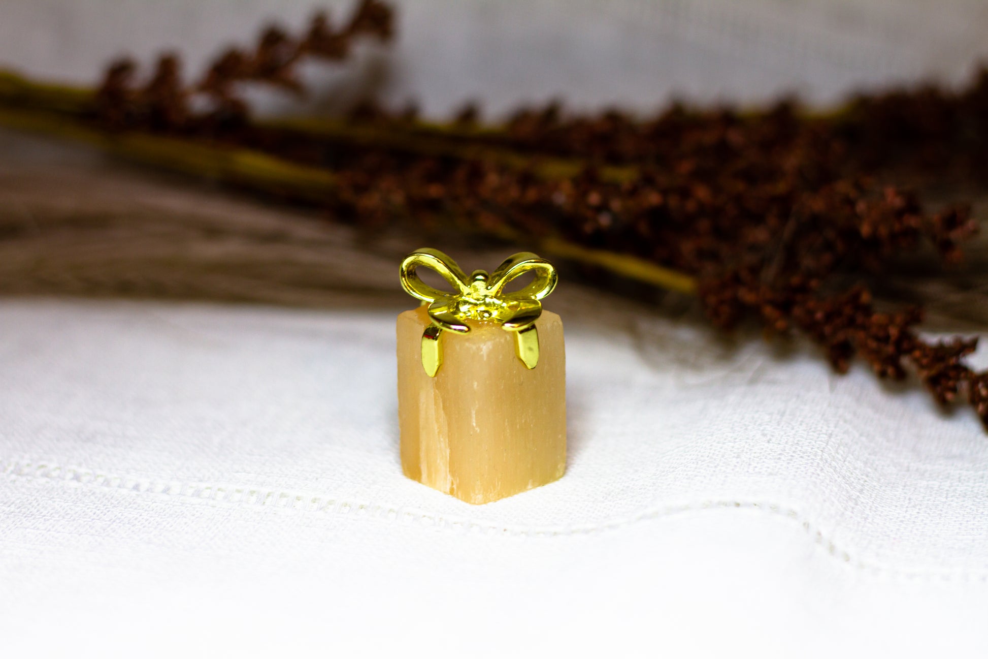 Otroligt söt, vÀlgjord och fÀrgglad julklapp i den helande och motiverande kristallen orange selenit. Julklappen Àr riktigt lÀcker med sina typiska selenit-flashes, och Àr ca 2,8cm hög! [Kristallen pÄ bilderna Àr den som sÀljs]