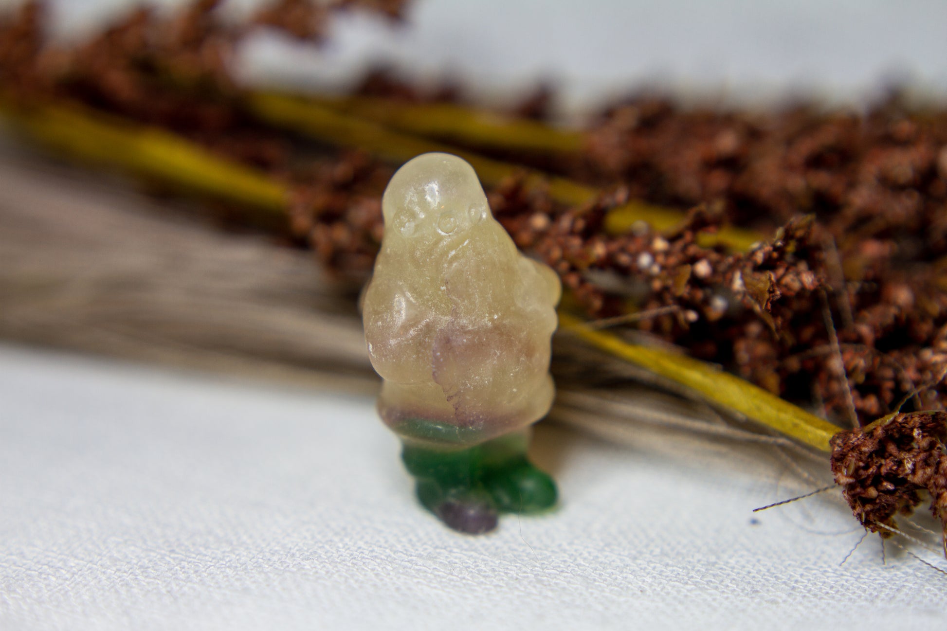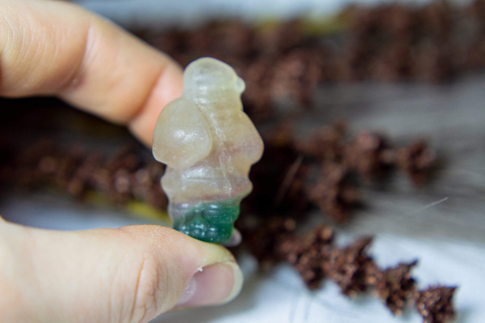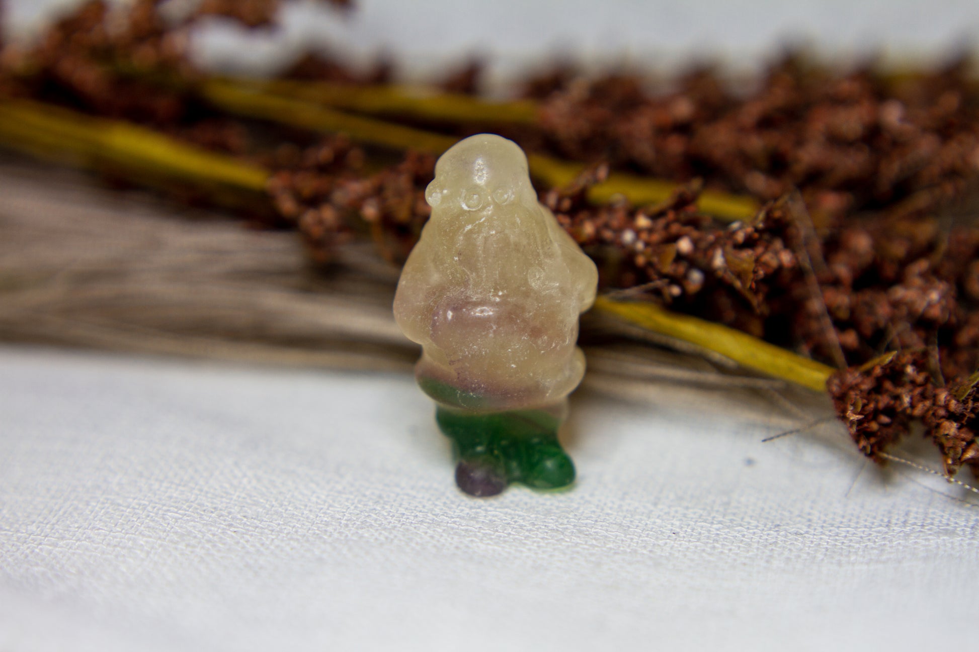 Superfin, juicy och fÀrgskiftande jultomte i kristallen regnbÄgsfluorit. Tomten inkluderar bÄde grön, lila, gul, vit och orange fÀrg och Àr ca 4cm hög!