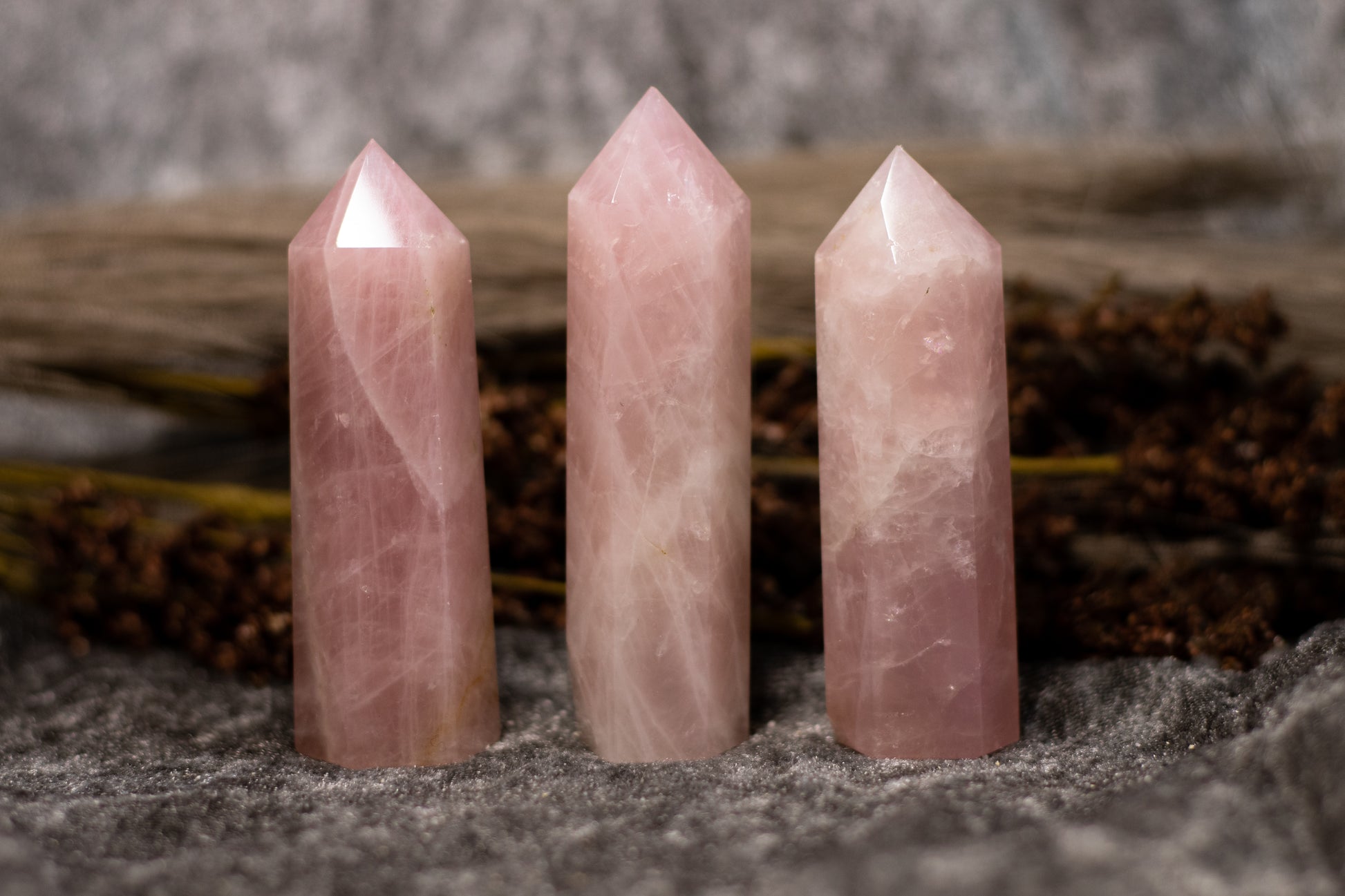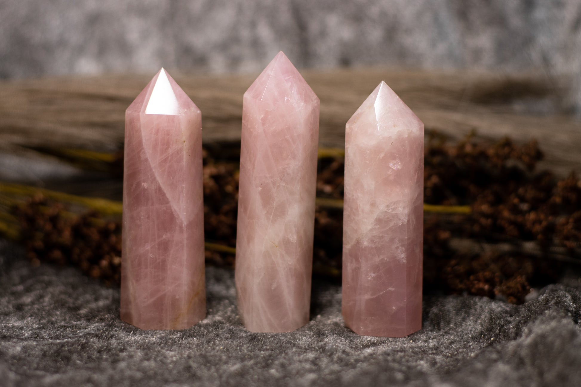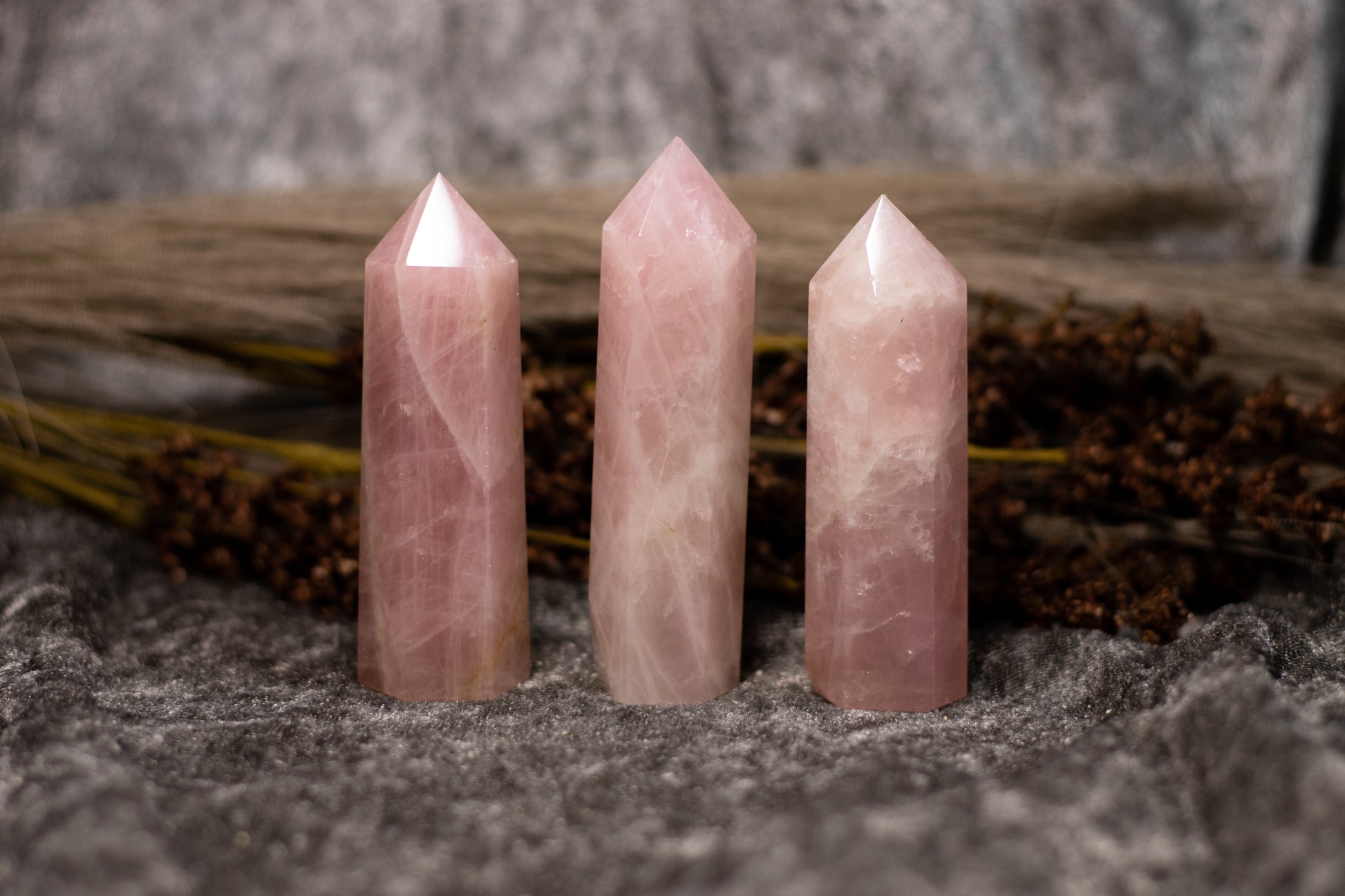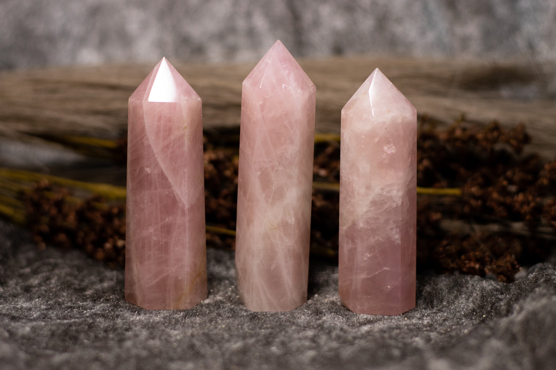 Jättefina rosenkvartsspetsar fyllda med djupa rosa färgskiftningar och fin kvarts i djupet av spetsarna!