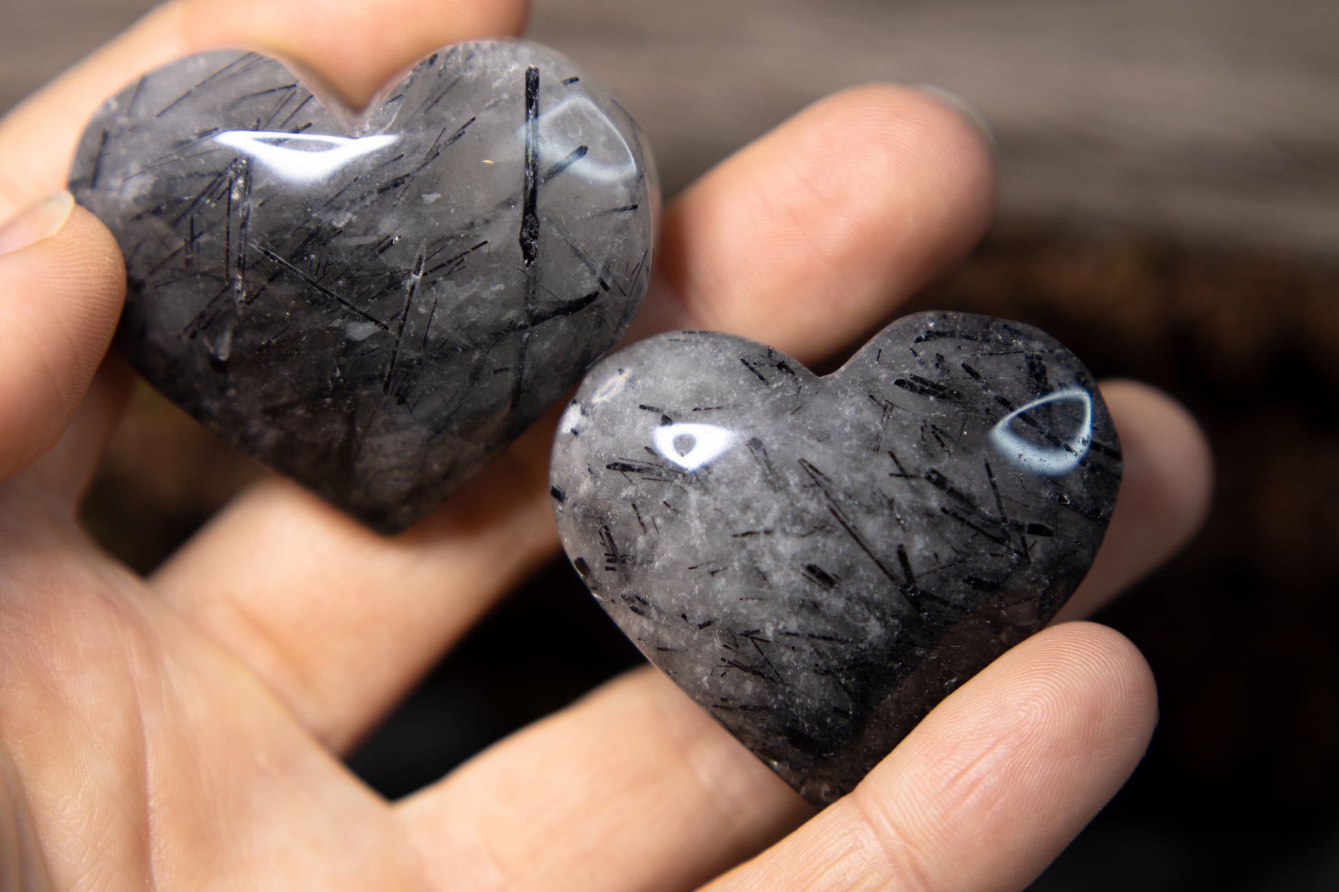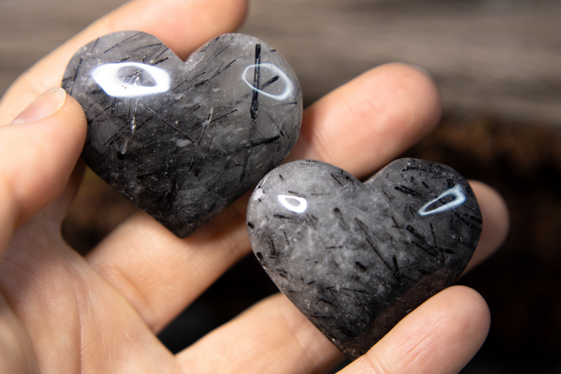 Jättefina, högkvalitativa och stora hjärtan i svart turmalin i kvarts!