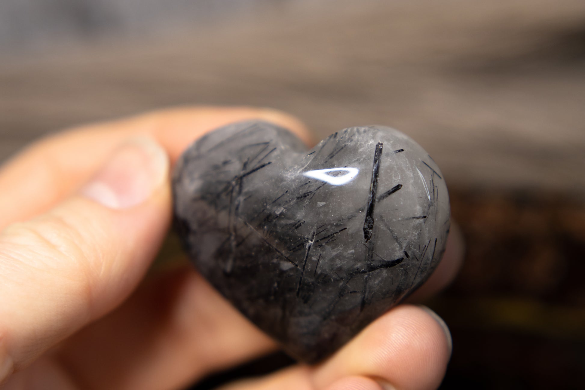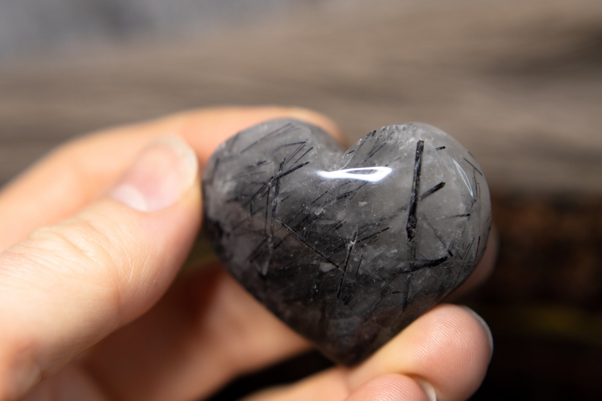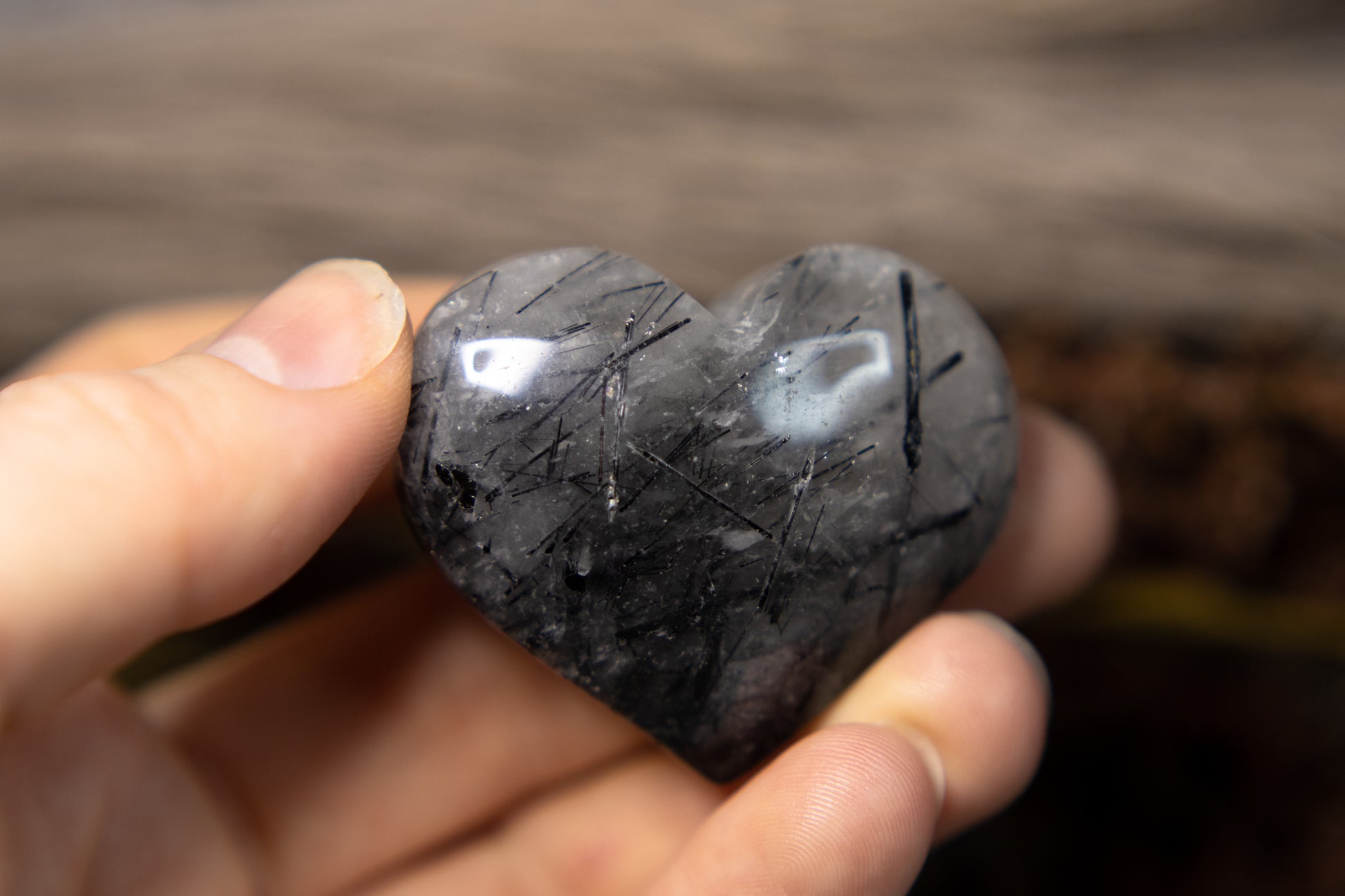 Svart turmalin i kvarts - hjärta